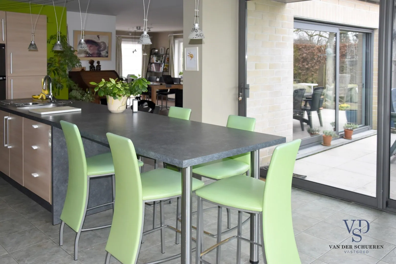 Deze verrassend ruime eigendom beschikt op het gelijkvloers over een inkom met gastentoilet, een bureel en een wasplaats. Een leefruimte met open geïnstalleerde keuken, met mooi zicht op de tuin. De verdieping is vervolgens voorzien van 3slaapkamers en een badkamer.