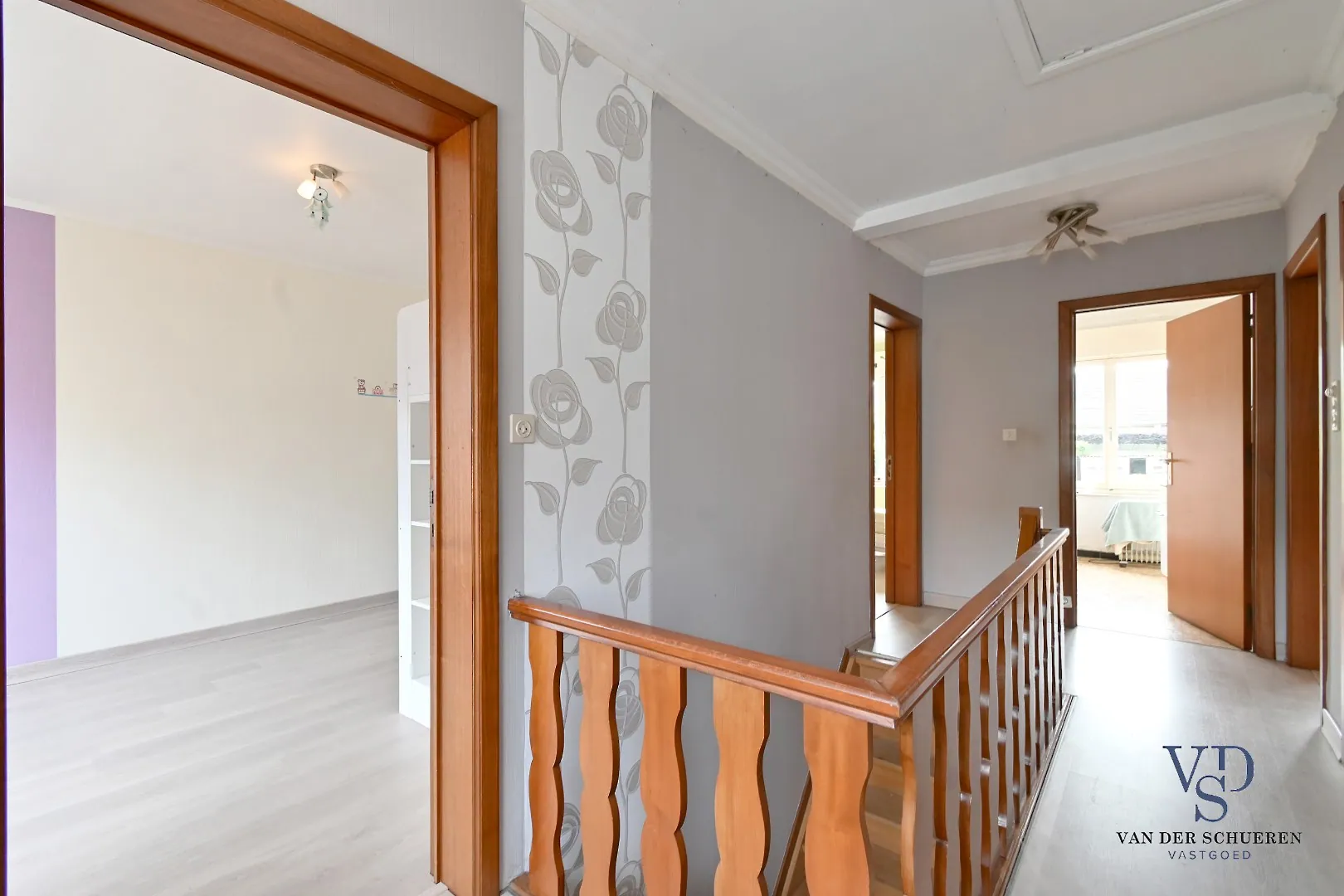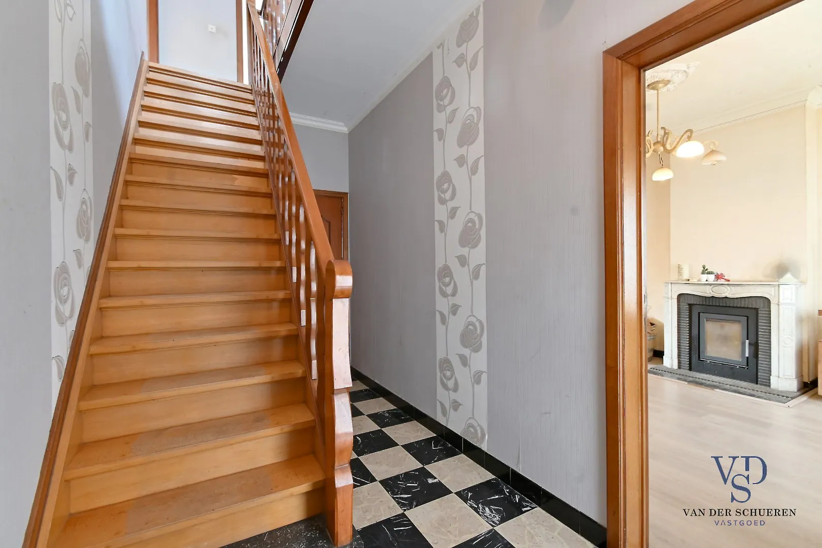 Deze bijzonder degelijke gesloten bebouwing is op het gelijkvloers voorzien van een ruime inkomhal, lichtrijke leefruimte voorzien van zowel een pelletkachel als houtcassette, afzonderlijke keuken, wasruimte/stockageruimte. Op de eerste verdieping bevinden zich vervolgens 4 ruime slaapkamers en een badkamer.