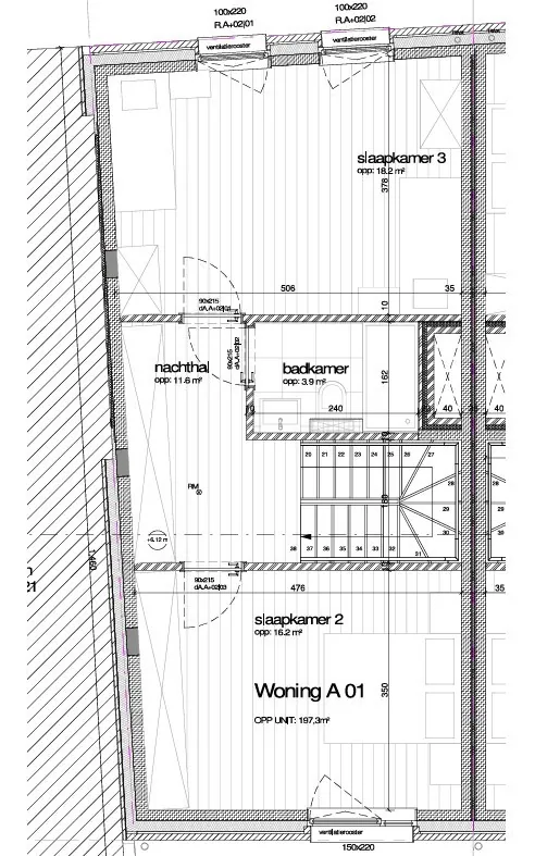*2e verdieping: Nachthal, tweede badkamer en twee extra slaapkamers.