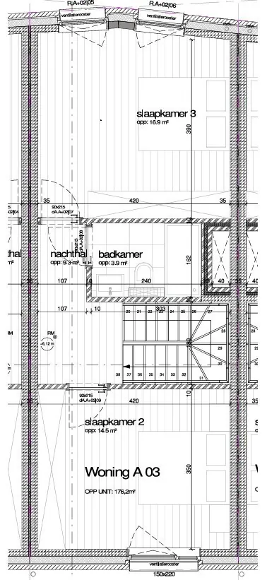 *2e verdieping: Nachthal, tweede badkamer en twee extra slaapkamers.
