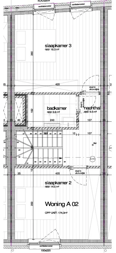 *2e verdieping: Nachthal, tweede badkamer en twee extra slaapkamers.