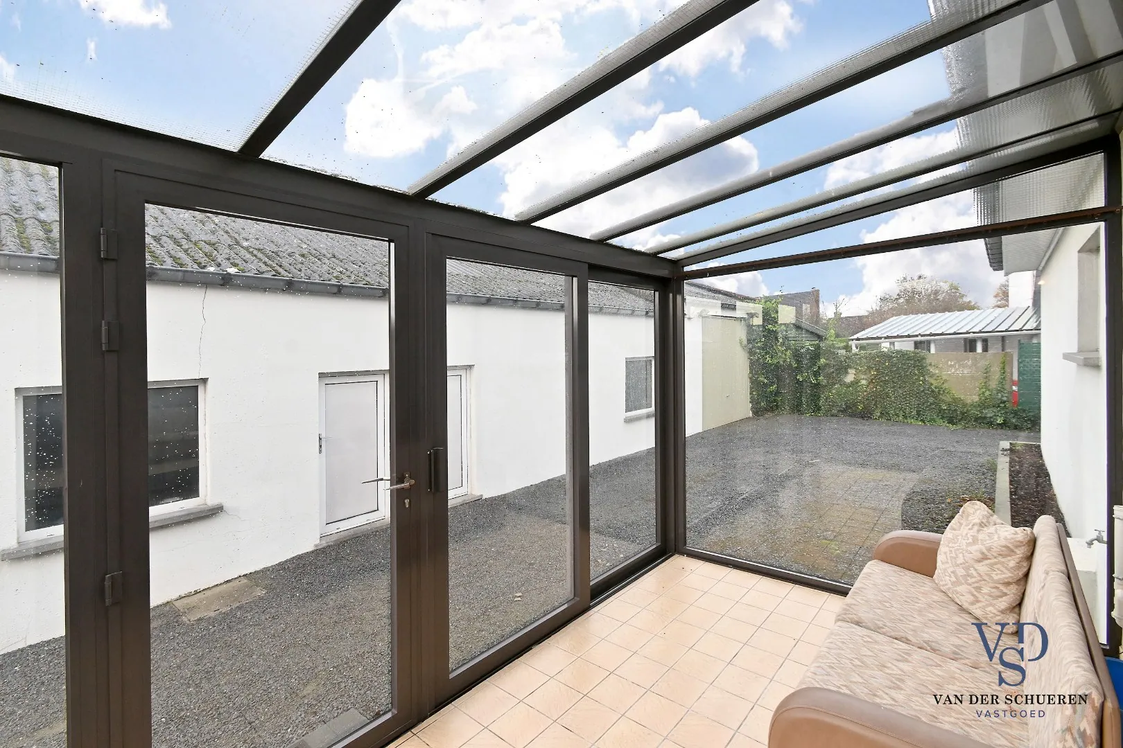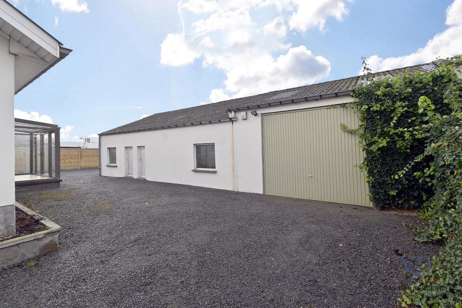 Achteraan het perceel vindt u een ruime loods/opslagruimte, ideaal voor wie nood heeft aan extra stockage, hobbyruimte of professioneler gebruik.