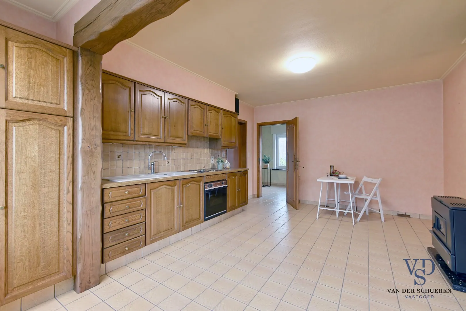 De lichte leefruimte vormt het hart van de woning en sluit naadloos aan op de ruime, praktische keuken. Via de keuken bereikt u de veranda, die dankzij de grote raampartijen een mooie overgang vormt tussen binnen en buiten.