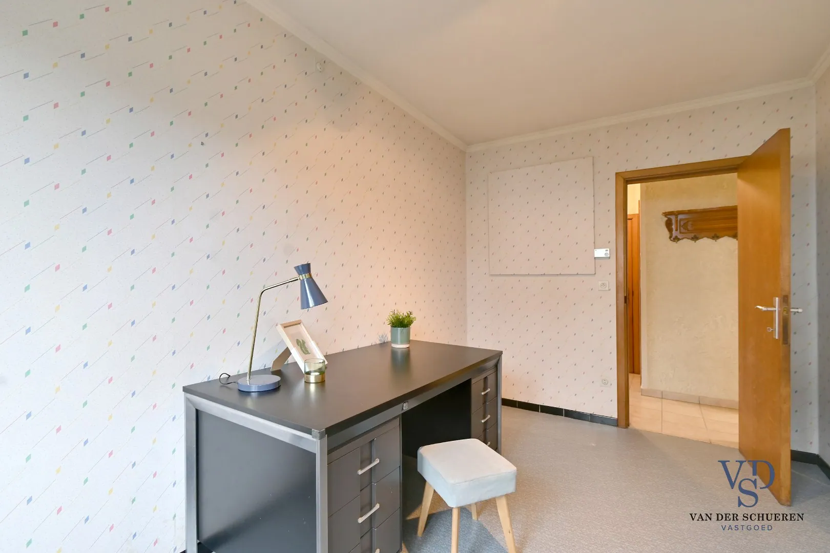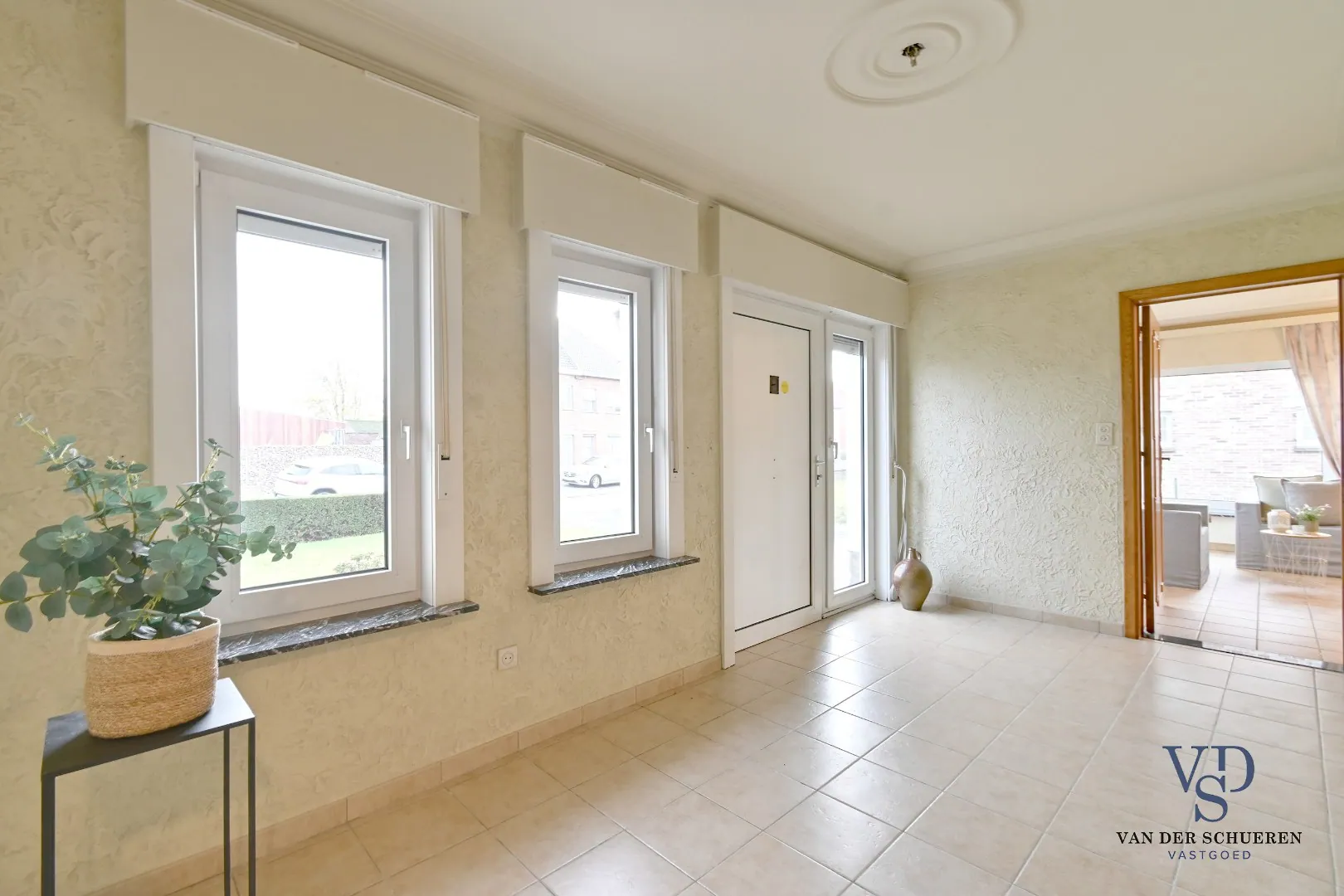 Deze te renoveren bungalowwoning biedt aangenaam gelijkvloers wonen met een slimme indeling en tal van mogelijkheden. U wordt verwelkomd in een ruime inkomhal, waar voldoende plaats is om een bureau-/hobbyruimte met natuurlijk daglicht te creëren – ideaal voor wie bijvoorbeeld van thuis uit werkt.