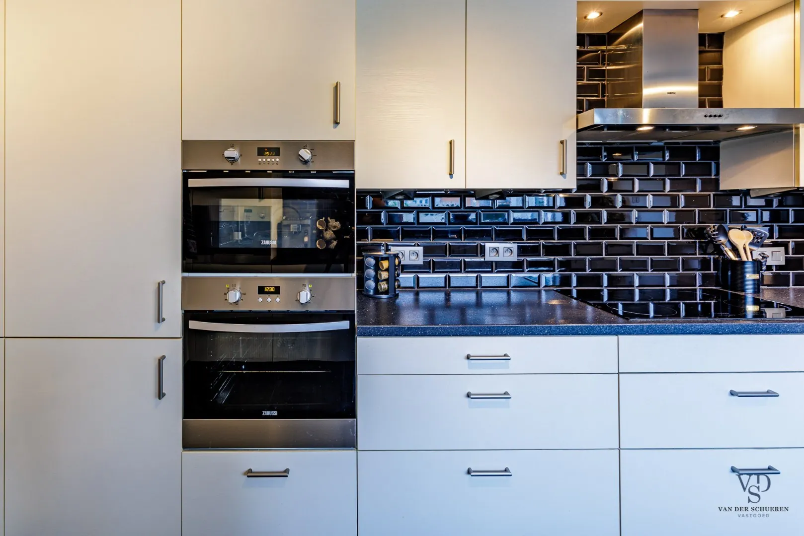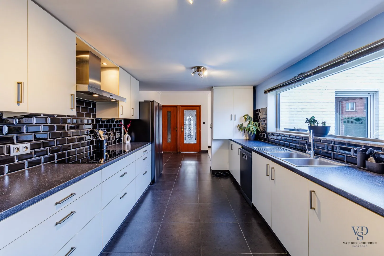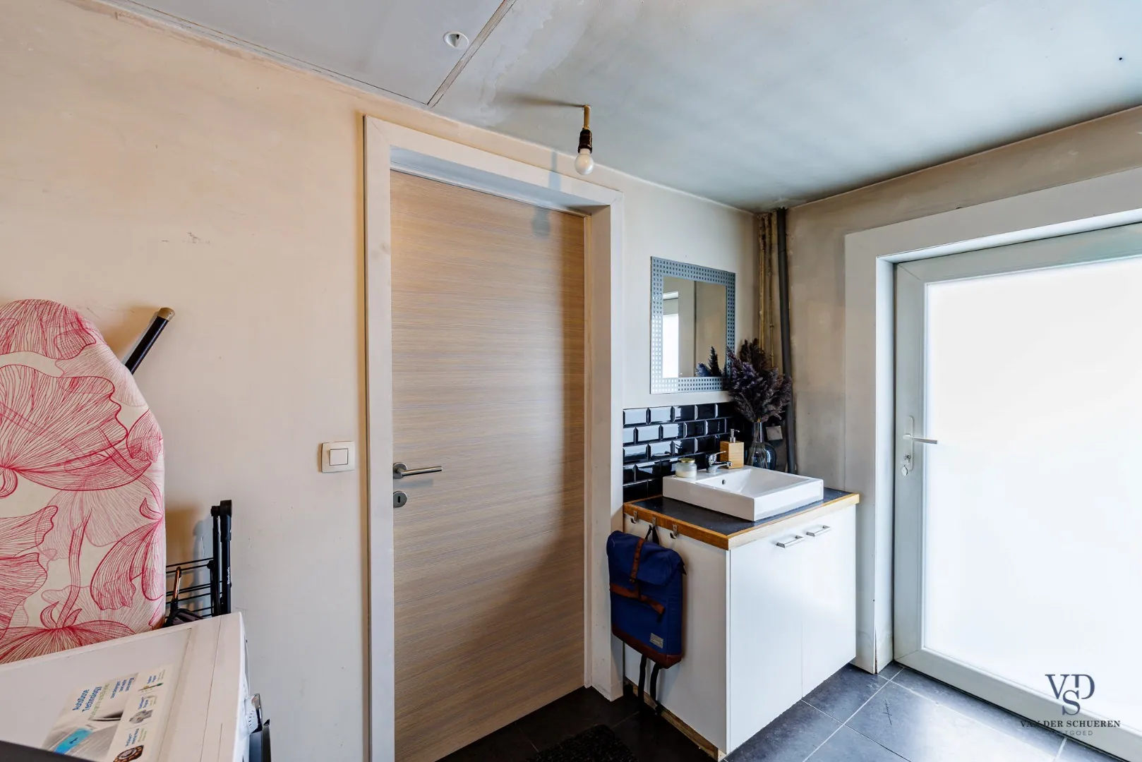 - Op het gelijkvloers een lichtrijke leefruimte, aansluitend op een eigentijdse keuken, én een handige wasplaats met afzonderlijk toilet en lavabo;