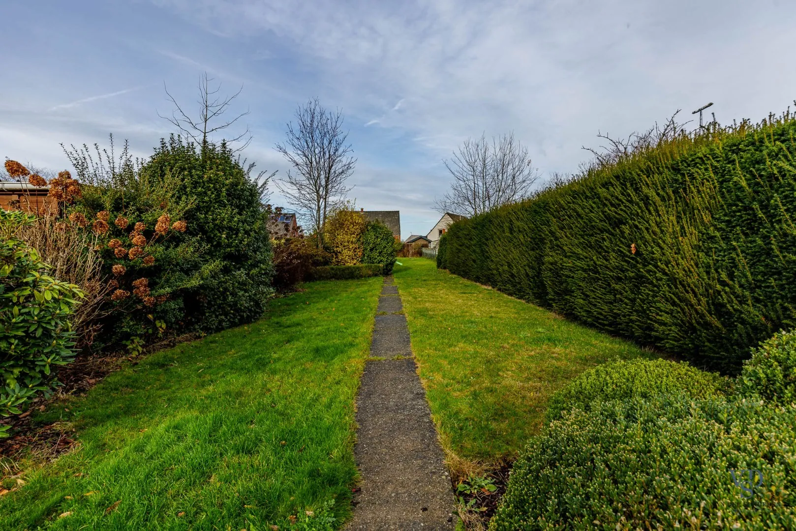Buiten beschikt u over een ruim terras, mooi geïntegreerd in de aangename tuin met veel diepte. Voor en naast de woning is er parkeergelegenheid.