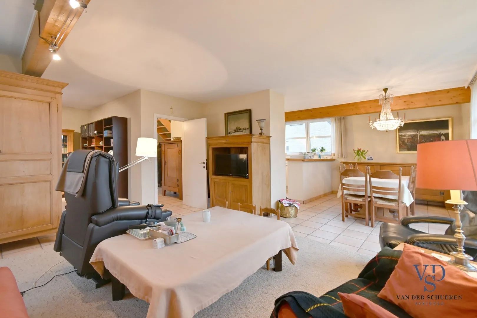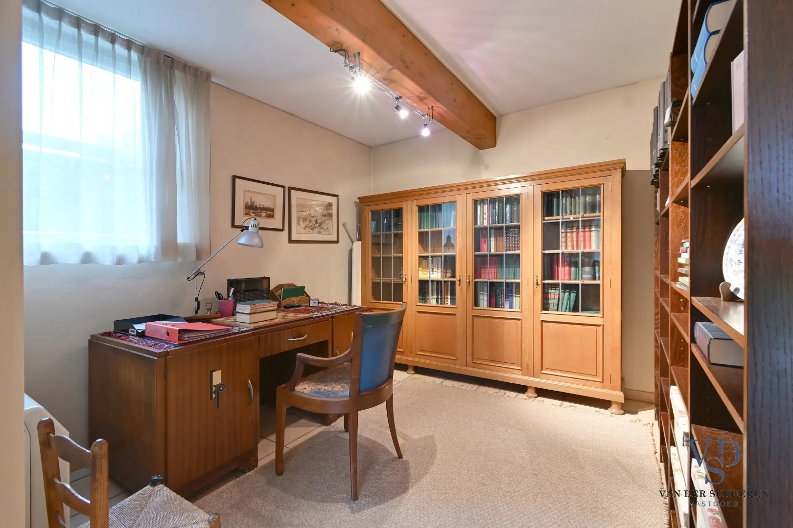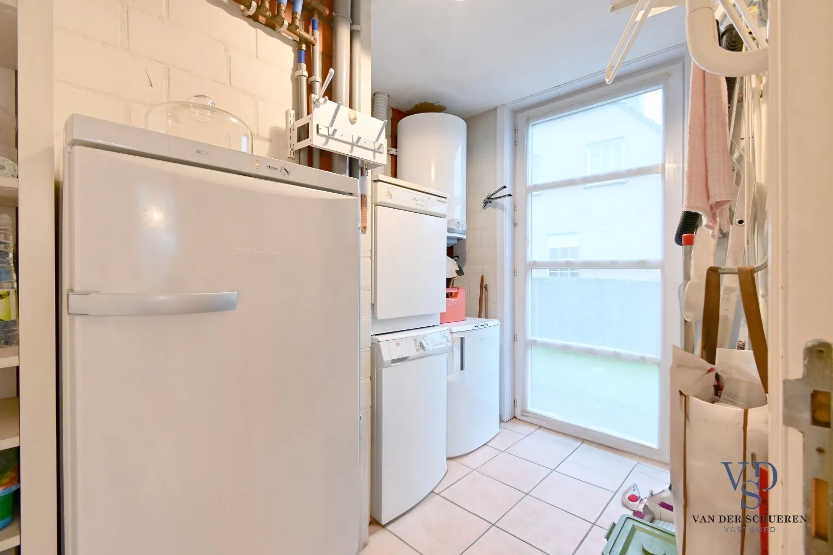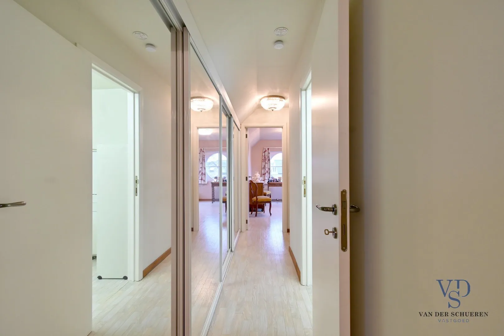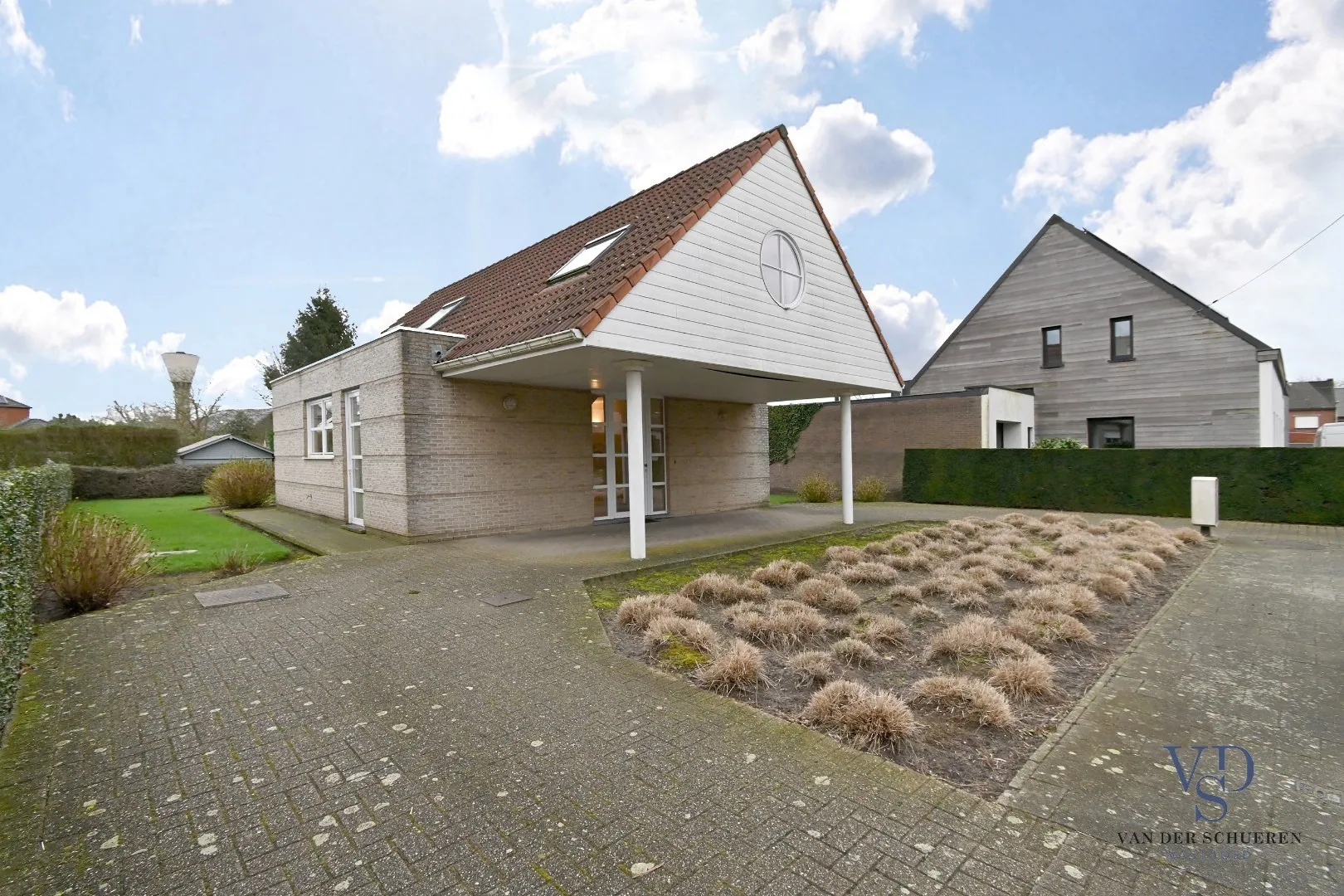 De woning beschikt over een praktische indeling: het gelijkvloers is voorzien van een aangename inkomhal met gastentoilet, ruime leefruimte met geïntegreerd bureel, open keuken en afzonderlijke berging. De verdieping telt vervolgens twee ruime slaapkamers (waarvan één met aansluitende berging), een nachthal voorzien van ingemaakte kasten en badkamer.