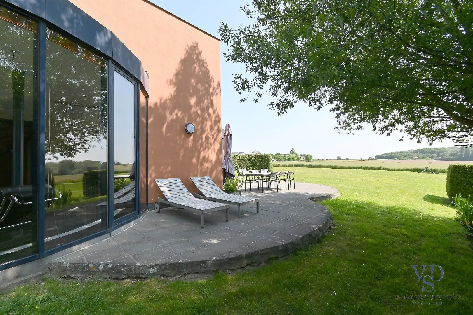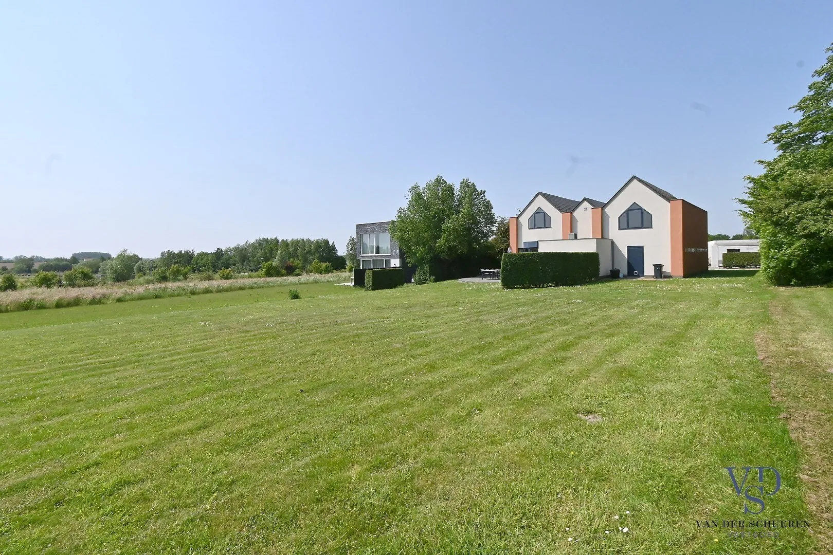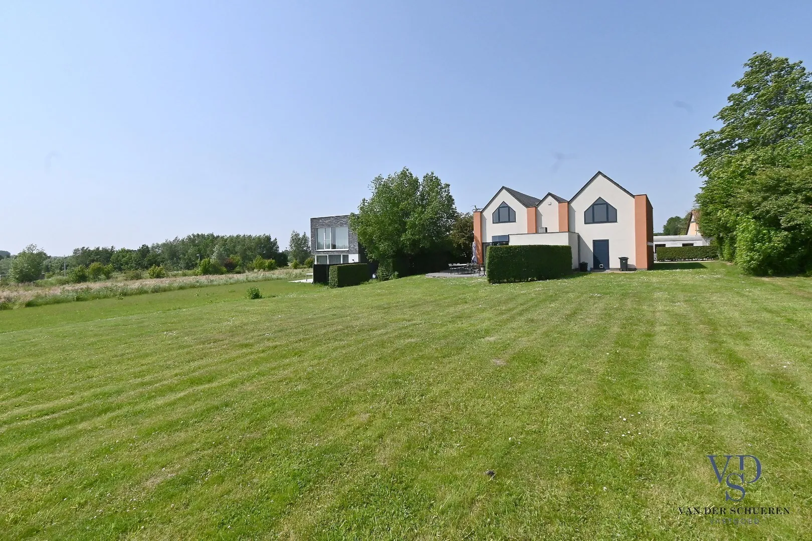 In het pittoreske Huise, bijna op het einde van dit authentieke, doodlopende kasseibaantje treffen we deze woning - met zicht op de unieke kouters - van de hand van architect Ronny Van Wassenhove.