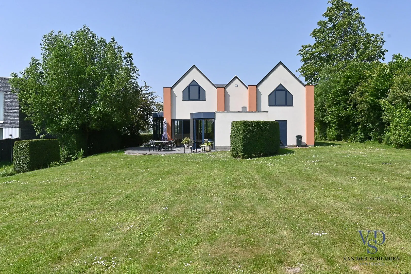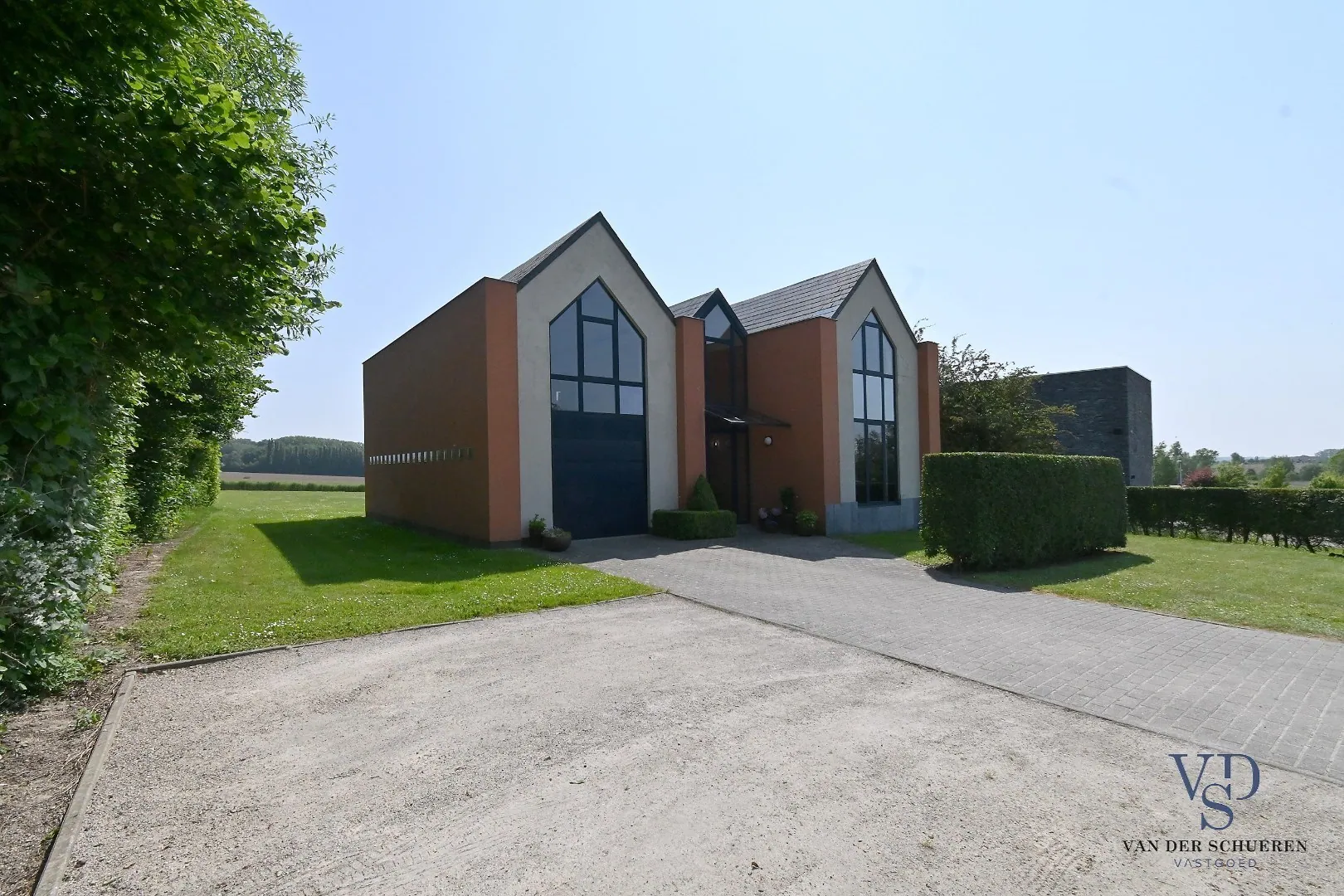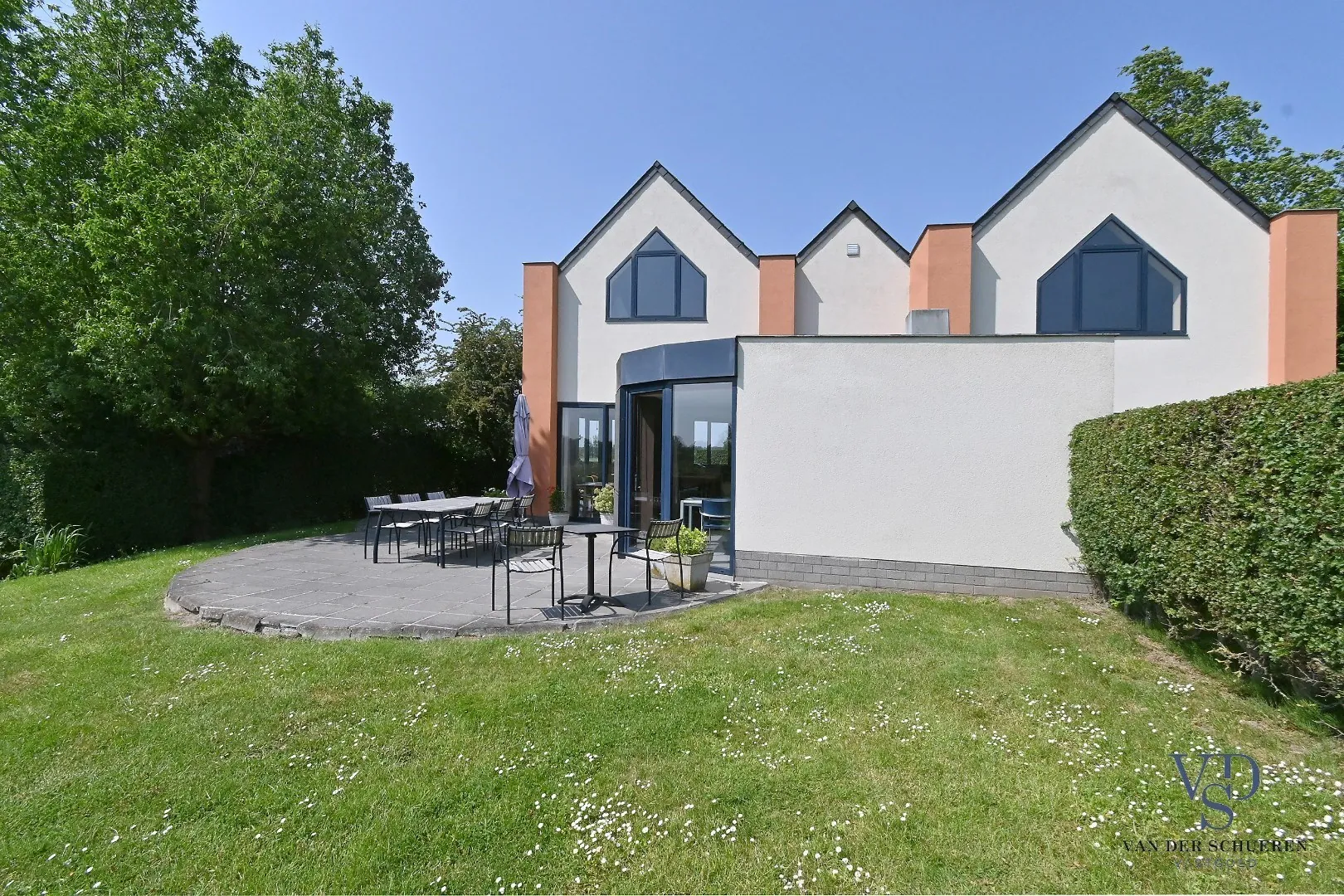 In het pittoreske Huise, bijna op het einde van dit authentieke, doodlopende kasseibaantje treffen we deze woning - met zicht op de unieke kouters - van de hand van architect Ronny Van Wassenhove.