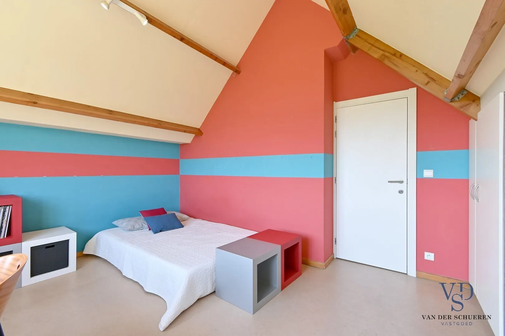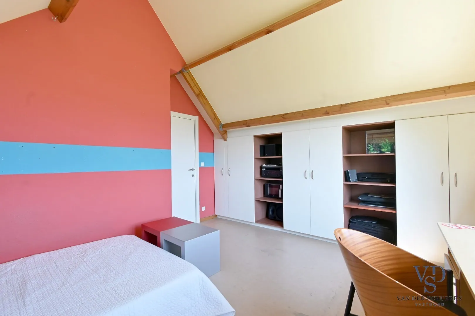 De verdieping beschikt over desgewenst 4 slaapkamers en een badkamer. De ingemaakte kasten zijn een bijzondere troef.