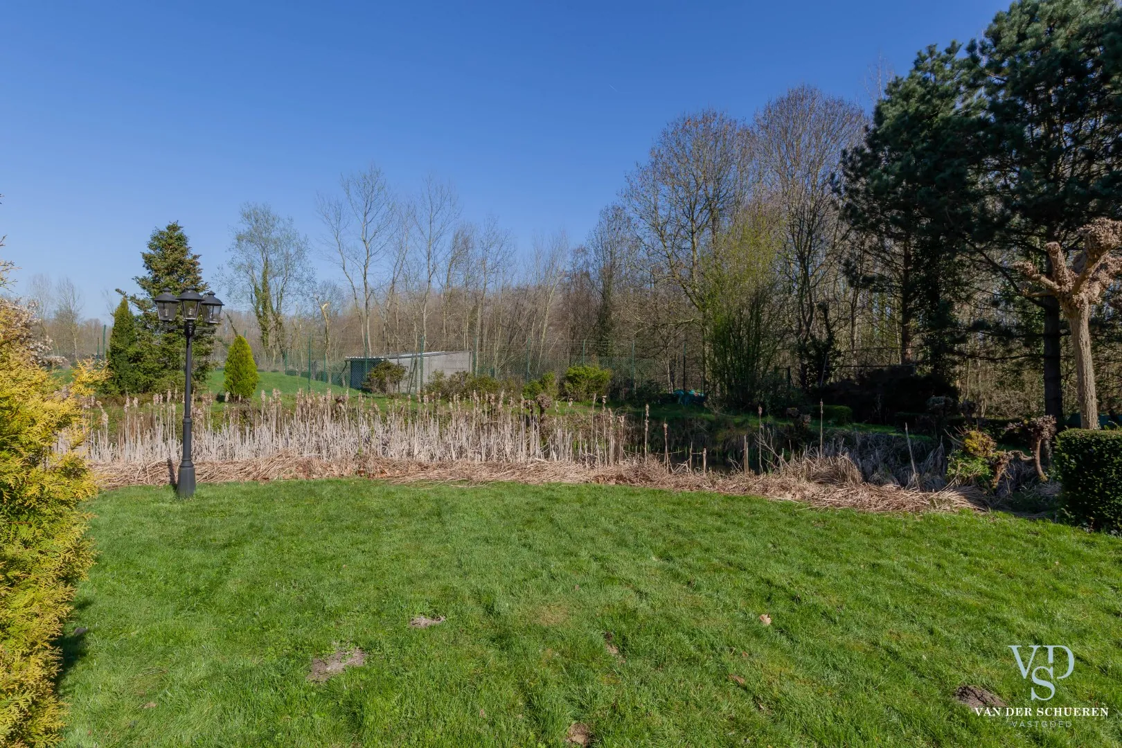 Een prachtig onderhouden tuin met tuinhuis, een weide met stal en een bos vervolledigen dit prachtige plaatje.