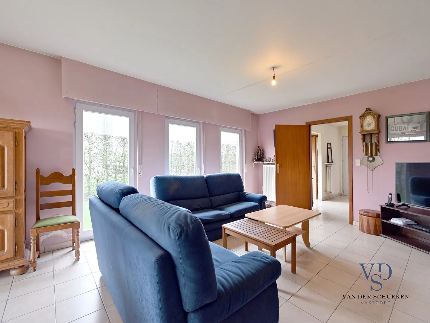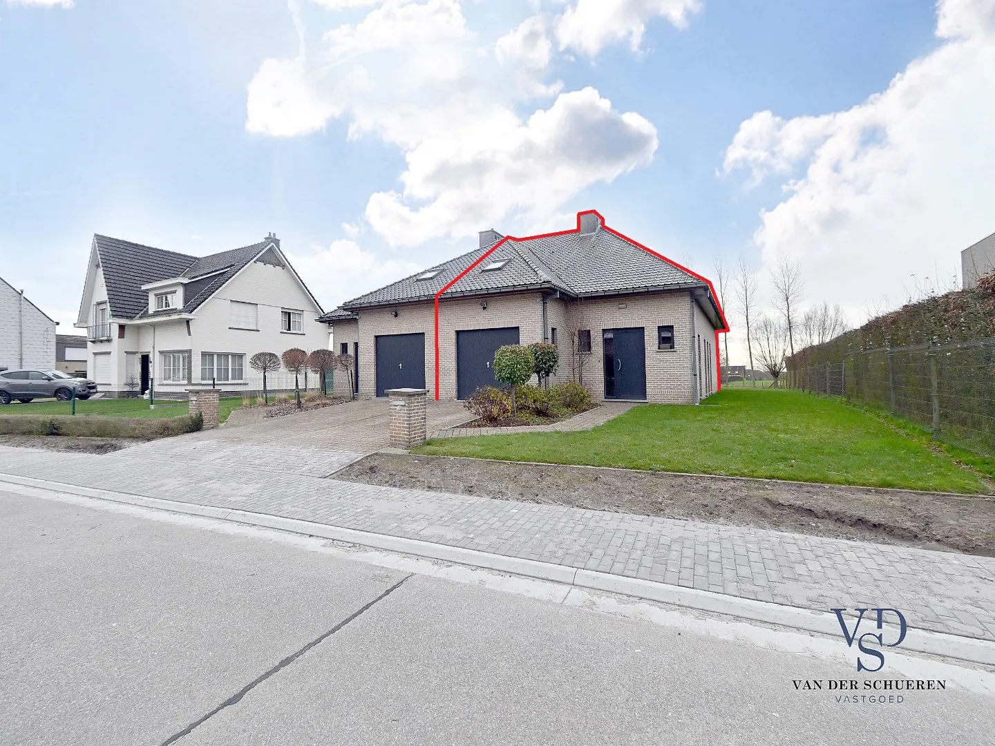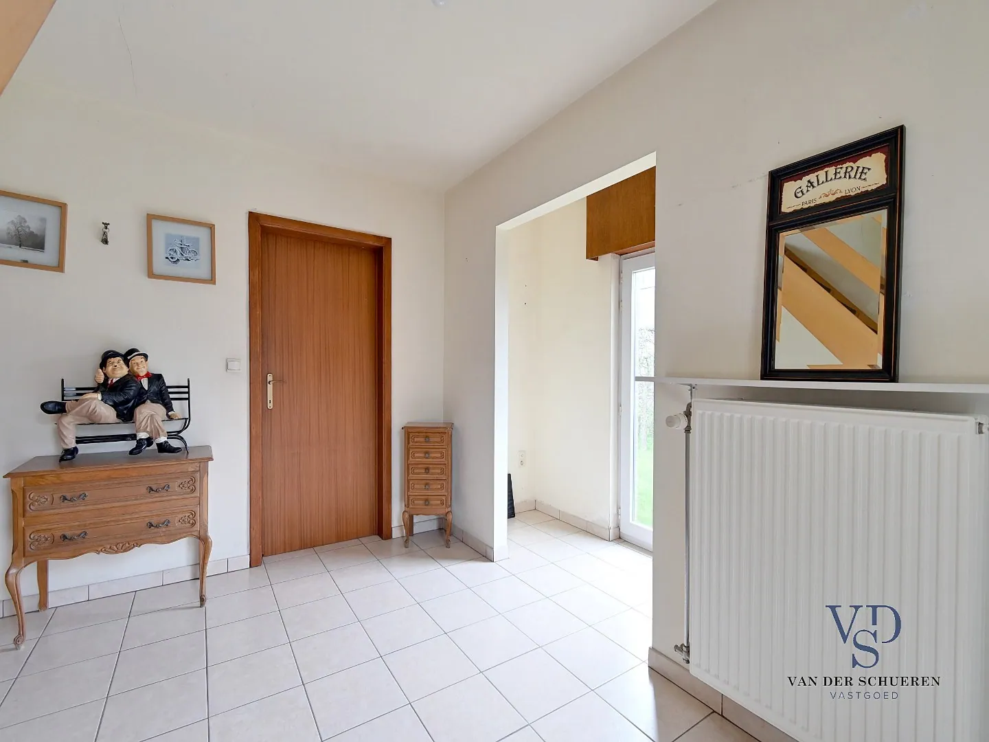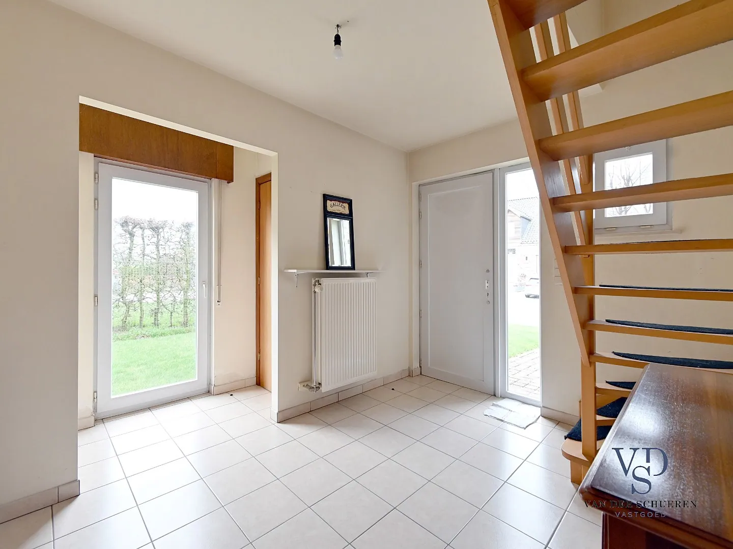 De lichtrijke inkom brengt je in de zit- en leefruimte. Naast de praktische keuken bevindt zich een afzonderlijke berging. De inpandige garage biedt mogelijkheden.