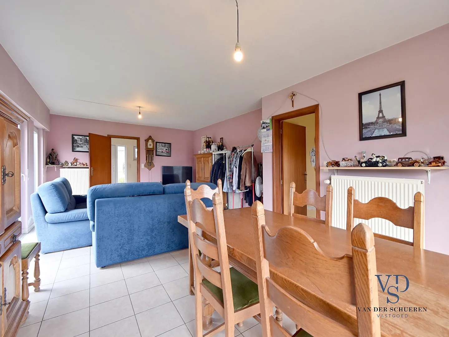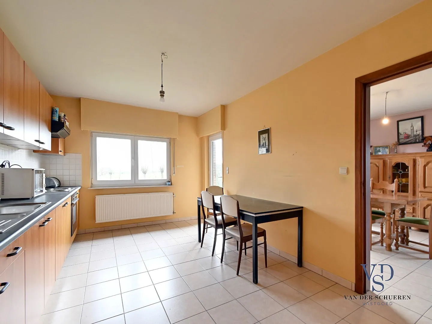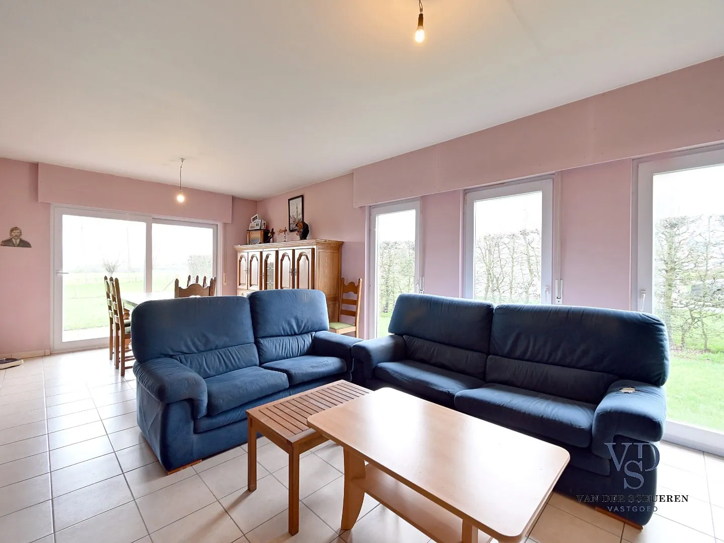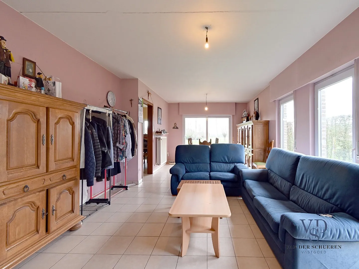 De lichtrijke inkom brengt je in de zit- en leefruimte. Naast de praktische keuken bevindt zich een afzonderlijke berging. De inpandige garage biedt mogelijkheden.