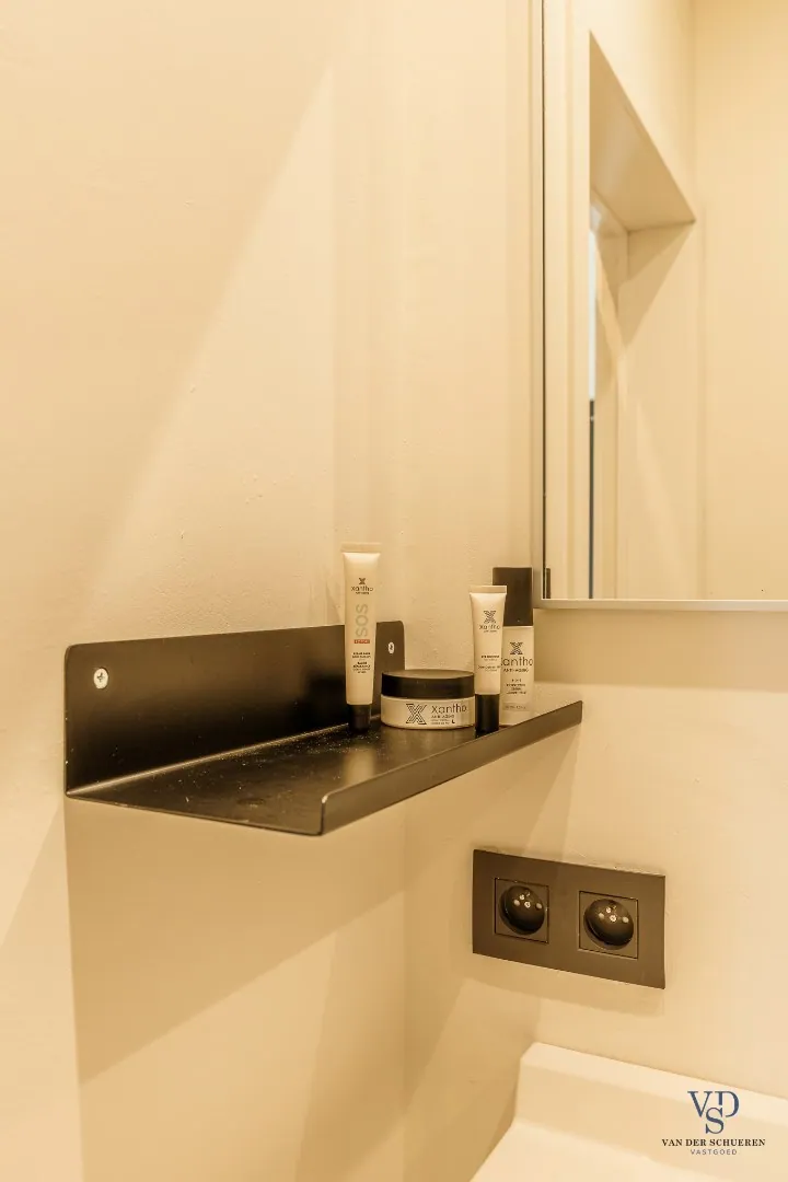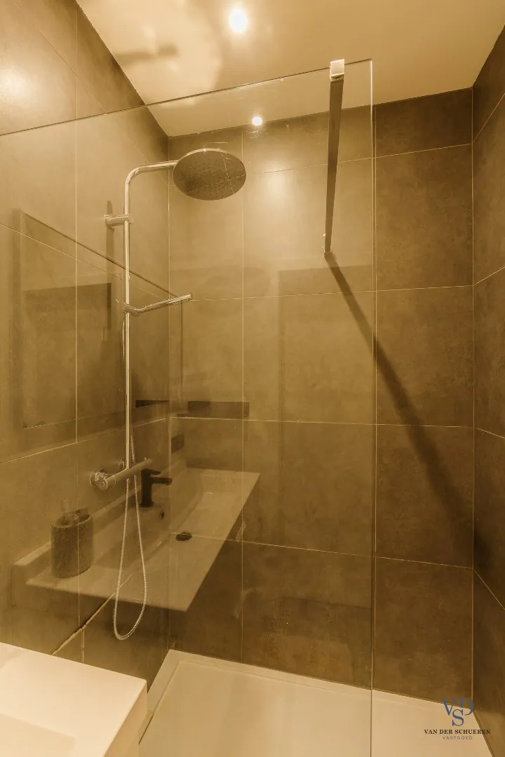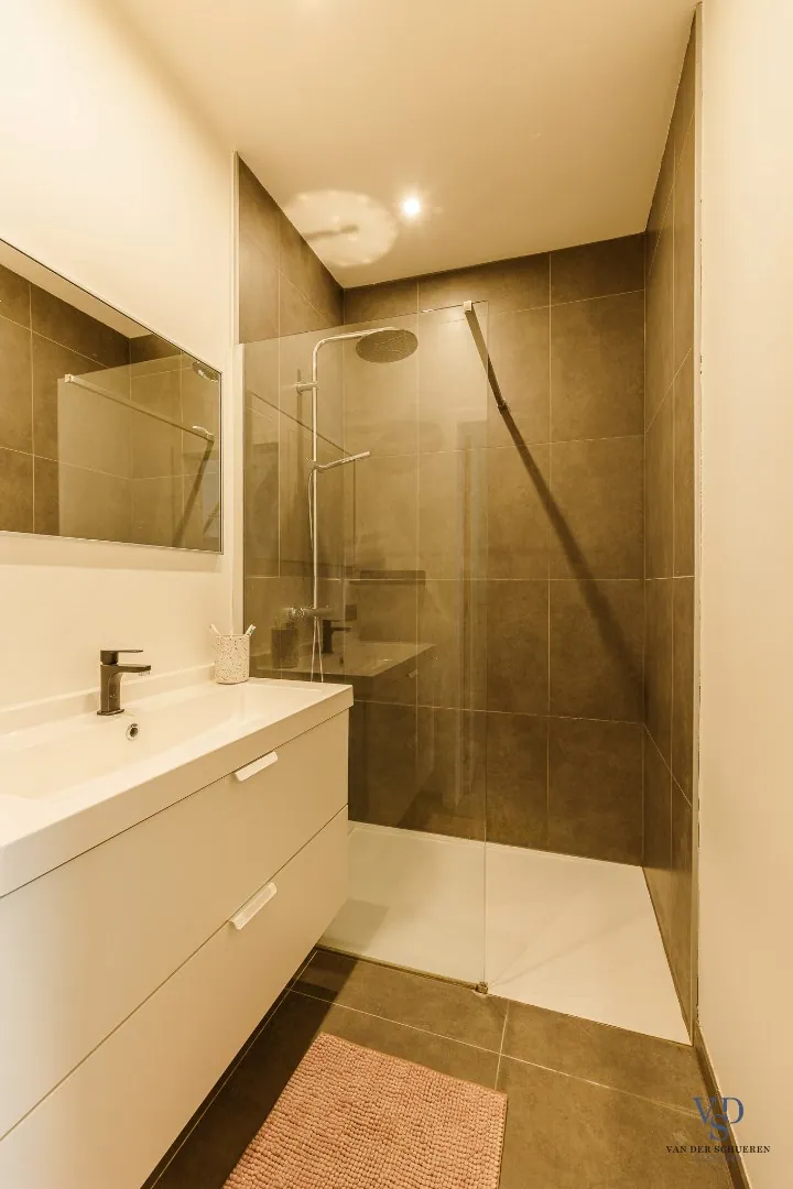 Bij het betreden van de woning kom je binnen in een verzorgde inkomhal die toegang biedt tot de lichtrijke leefruimte. De open, maar lichtjes afgezonderde zithoek creëert een gezellige sfeer, ideaal om tot rust te komen. Aansluitend vind je de volledig geïnstalleerde keuken, voorzien van moderne toestellen en met een handige aangrenzende berging, uitgerust met aansluitingen voor wasmachine en droogkast.
