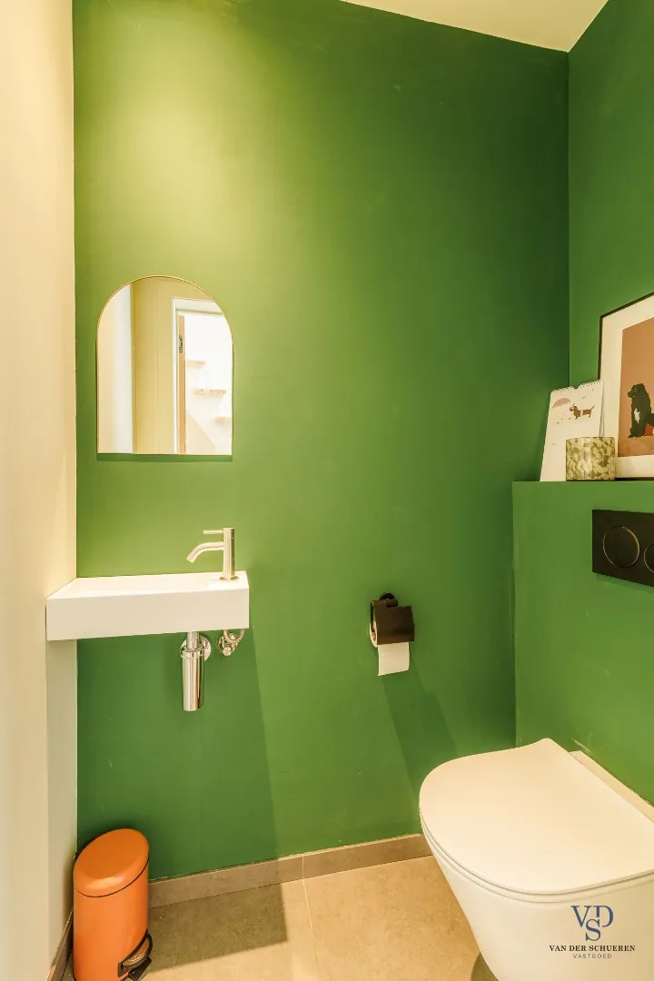 Op het gelijkvloers bevinden zich ook een badkamer, een apart gastentoilet, een slaapkamer en een extra kamer die perfect kan dienen als bureel, speelruimte of hobbykamer.