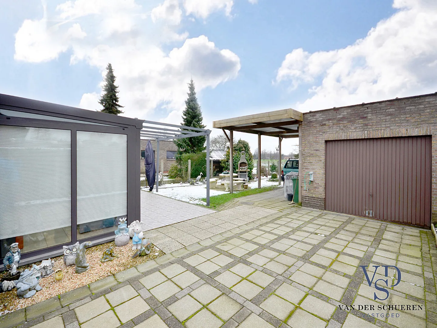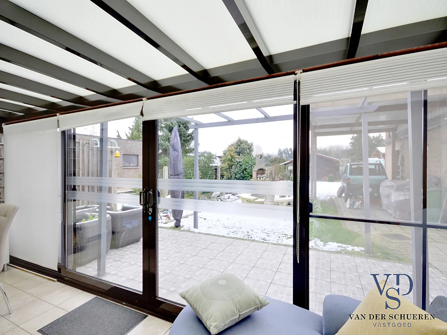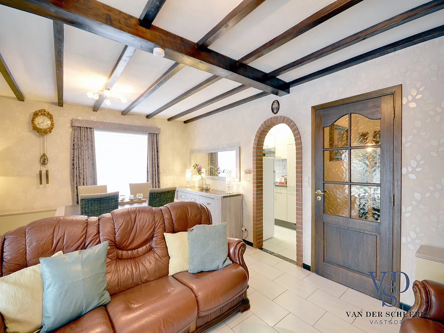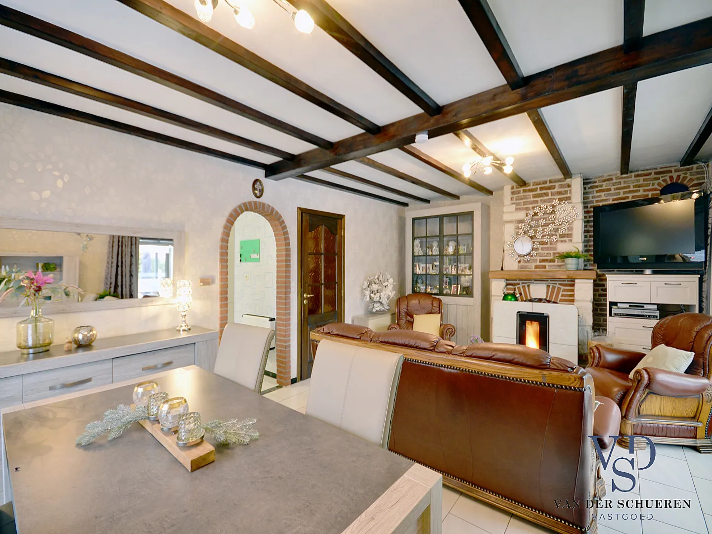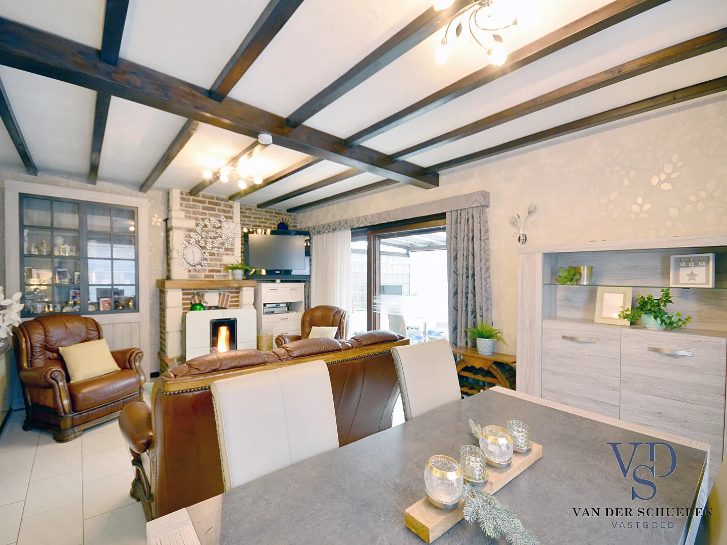 Deze lichtrijke woning beschikt over een aangename leefruimte en aansluitende leefveranda, met zicht op de tuin en de achter gelegen velden.