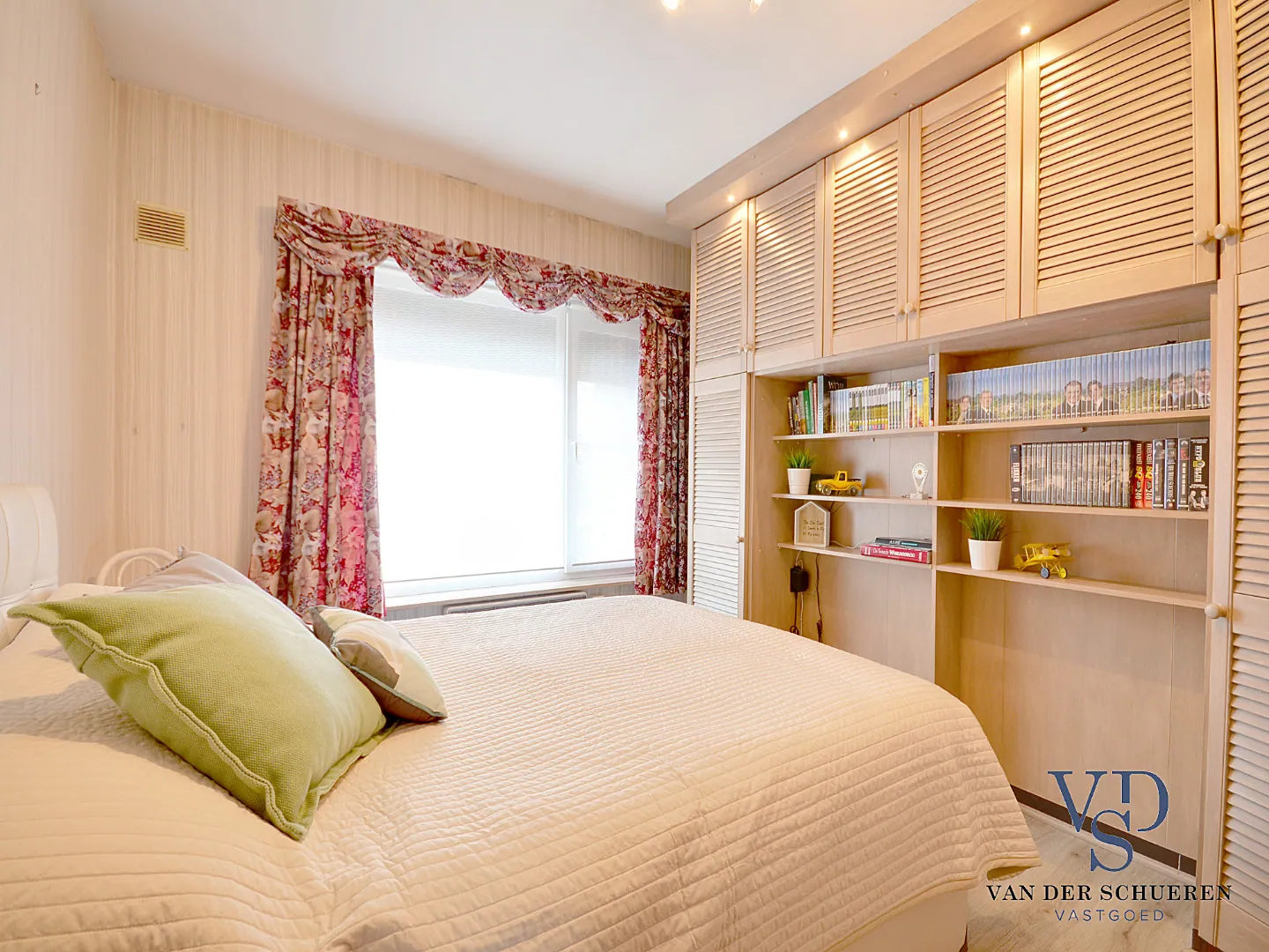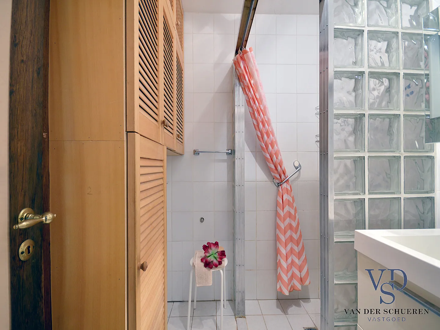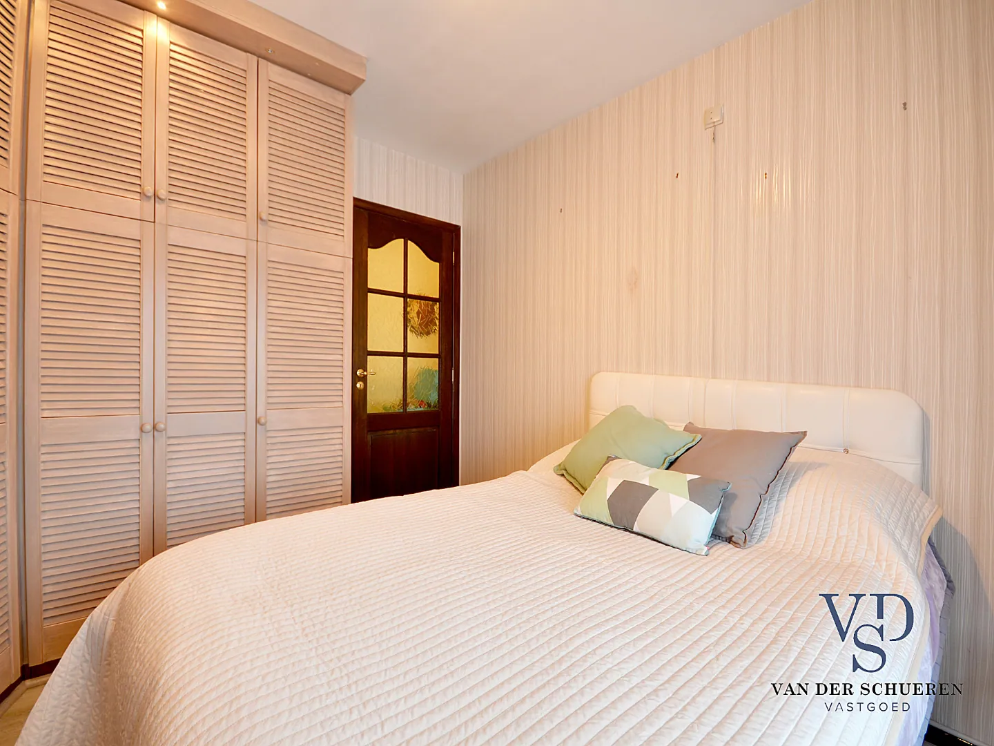 Vooraan bevinden er zich twee slaapkamers. De badkamer bevindt zich eveneens op het gelijkvloerse niveau.