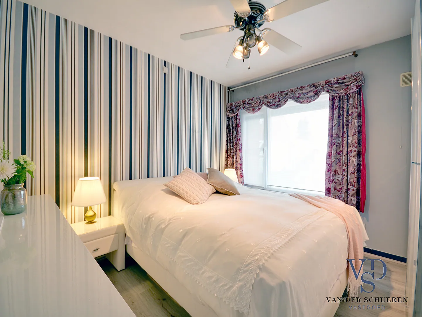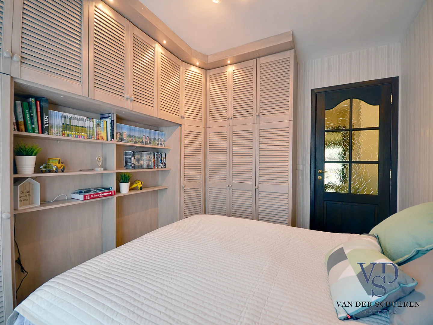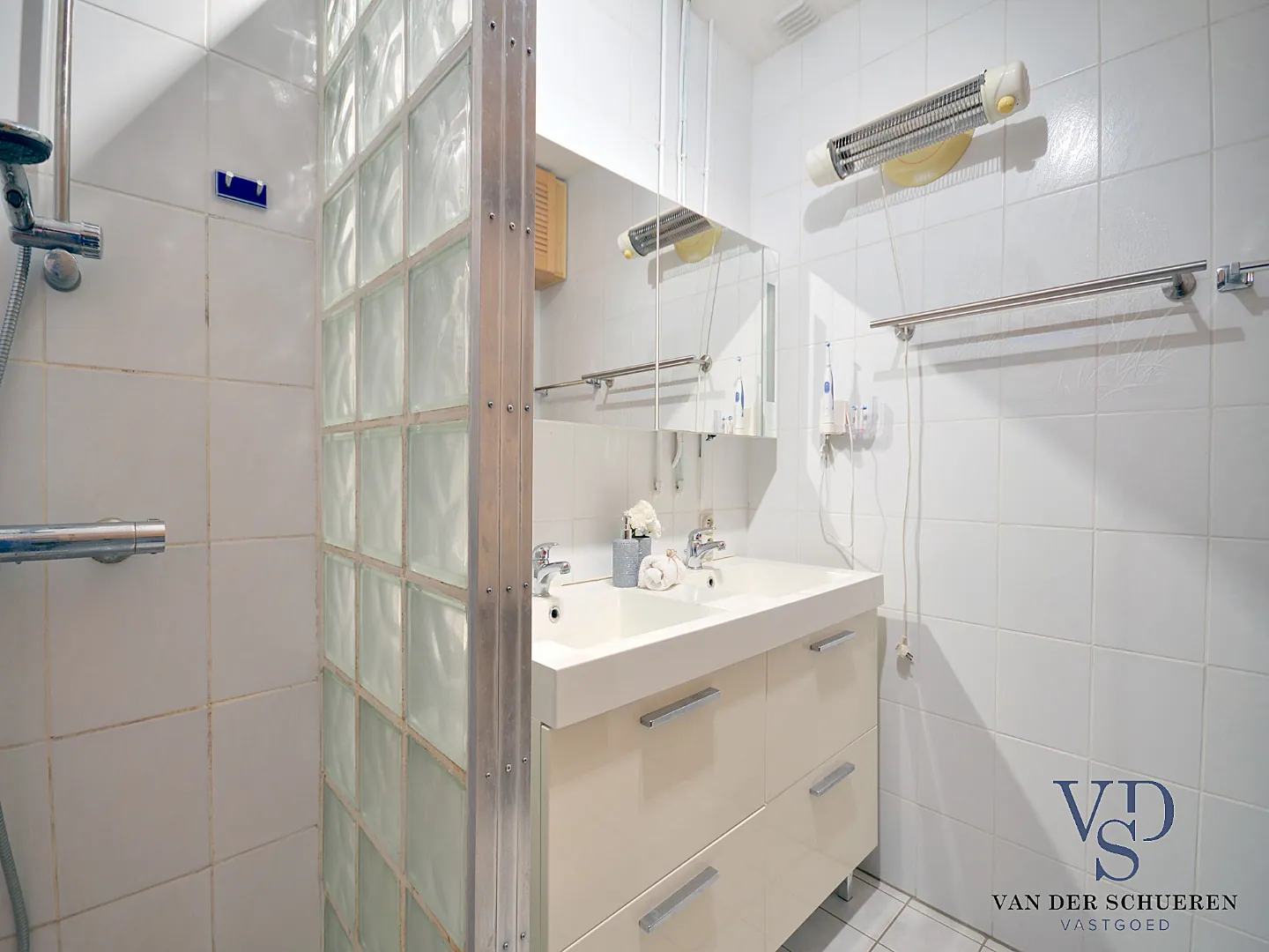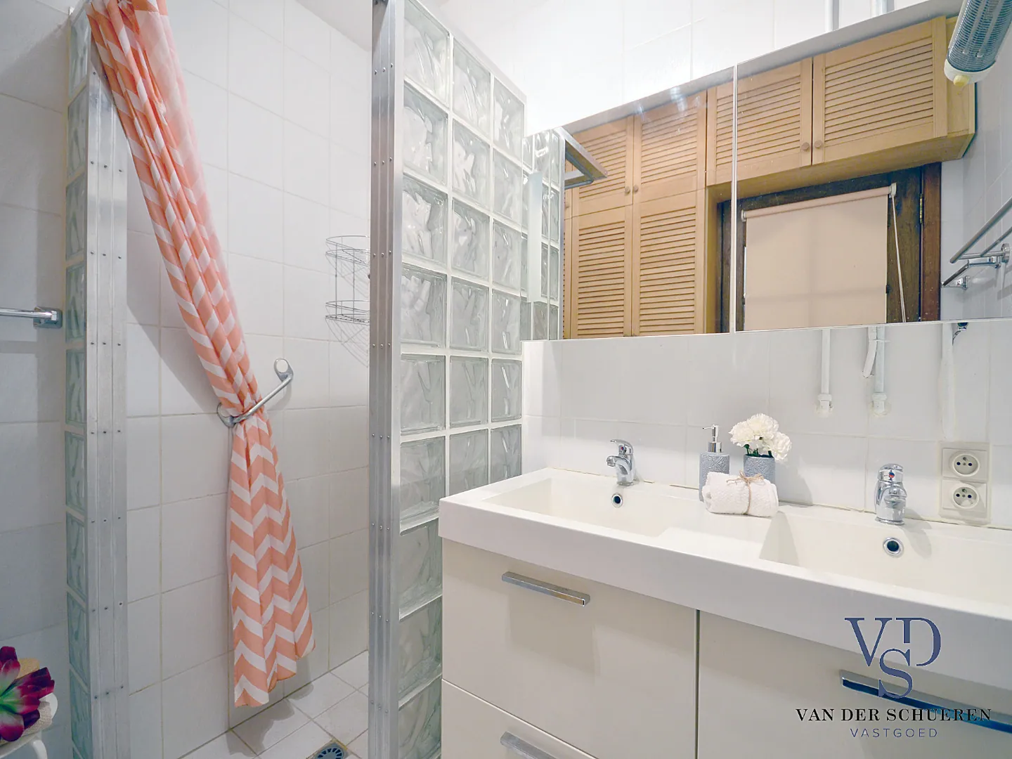 Vooraan bevinden er zich twee slaapkamers. De badkamer bevindt zich eveneens op het gelijkvloerse niveau.