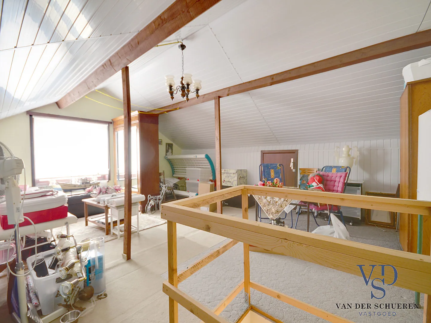 De verdieping is thans als zolder ingericht, maar heeft eveneens bijzondere mogelijkheden (de vloer van de zolder is in beton uitgevoerd).