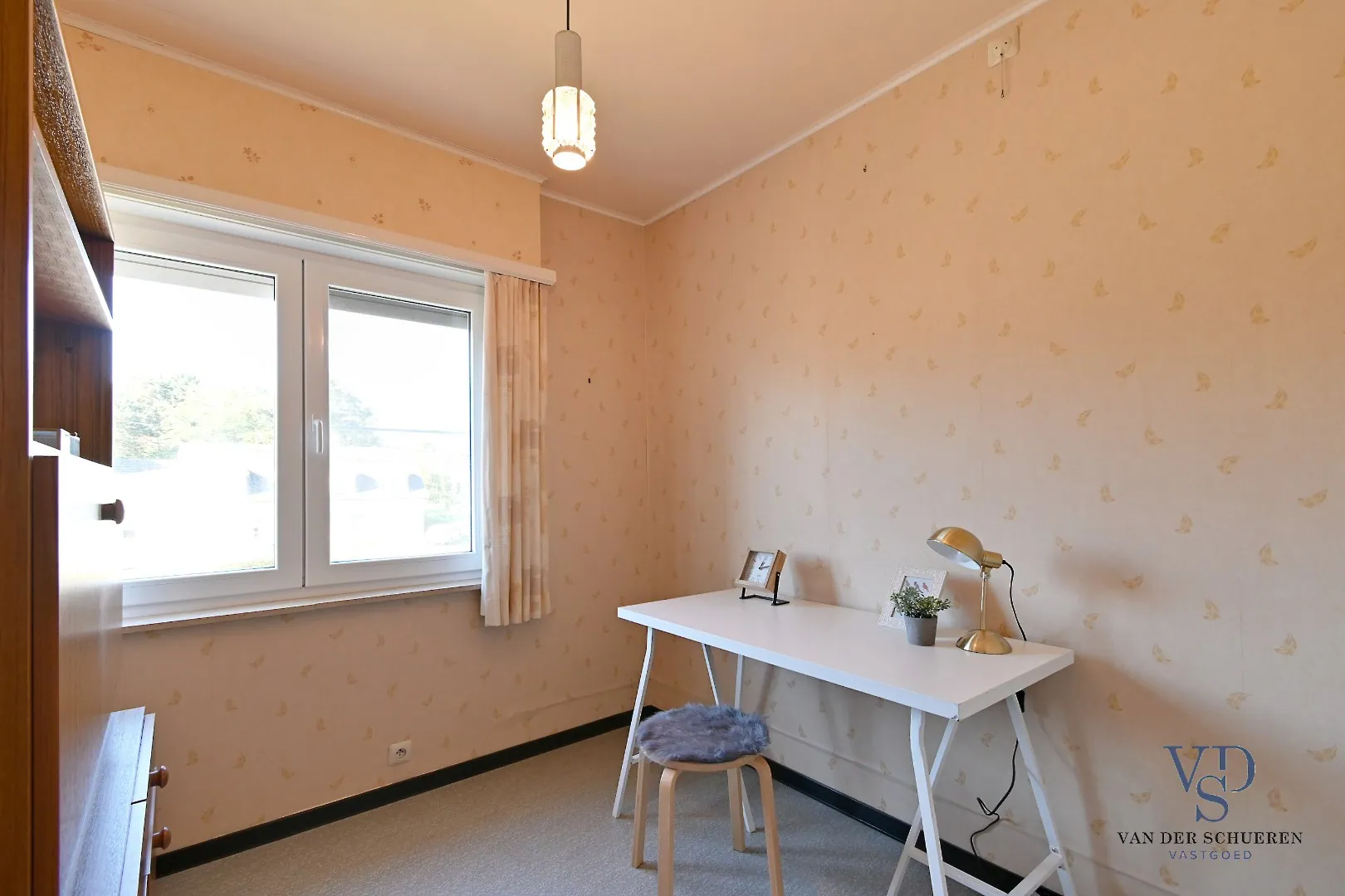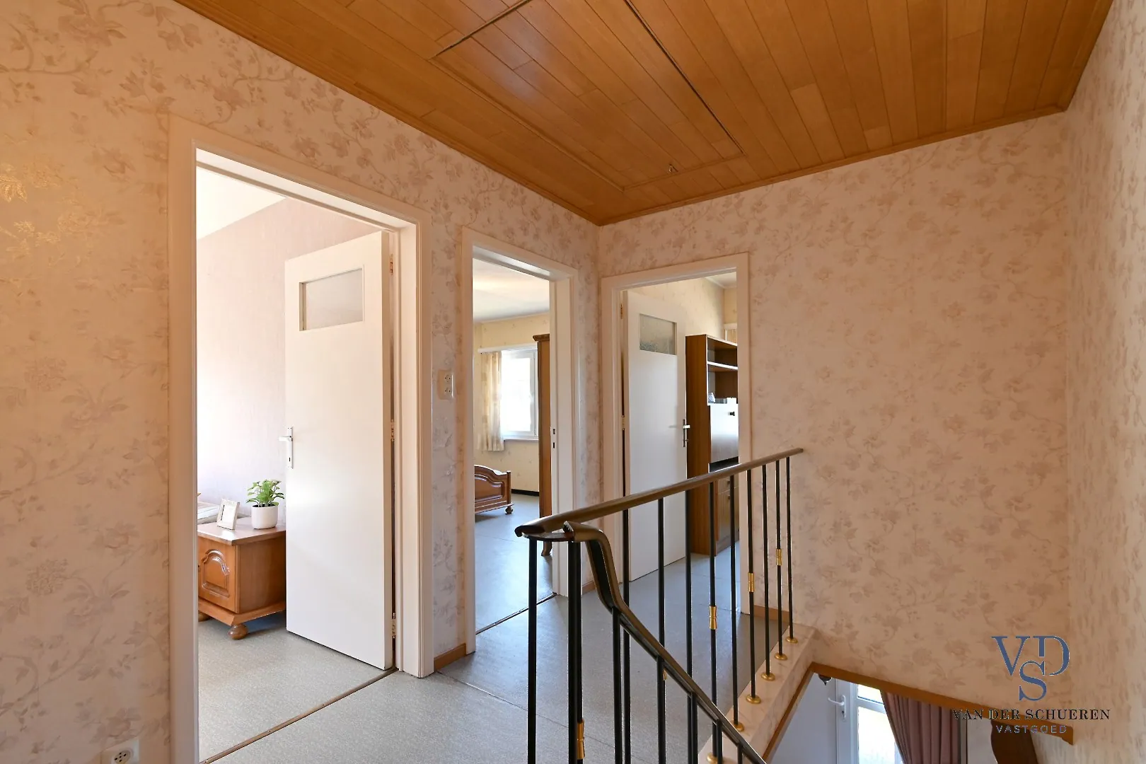 Op de eerste verdieping bevinden zich 2 ruime slaapkamers, 1 bijkomende kamer (bureel, dressing, ... ) en badkamer.