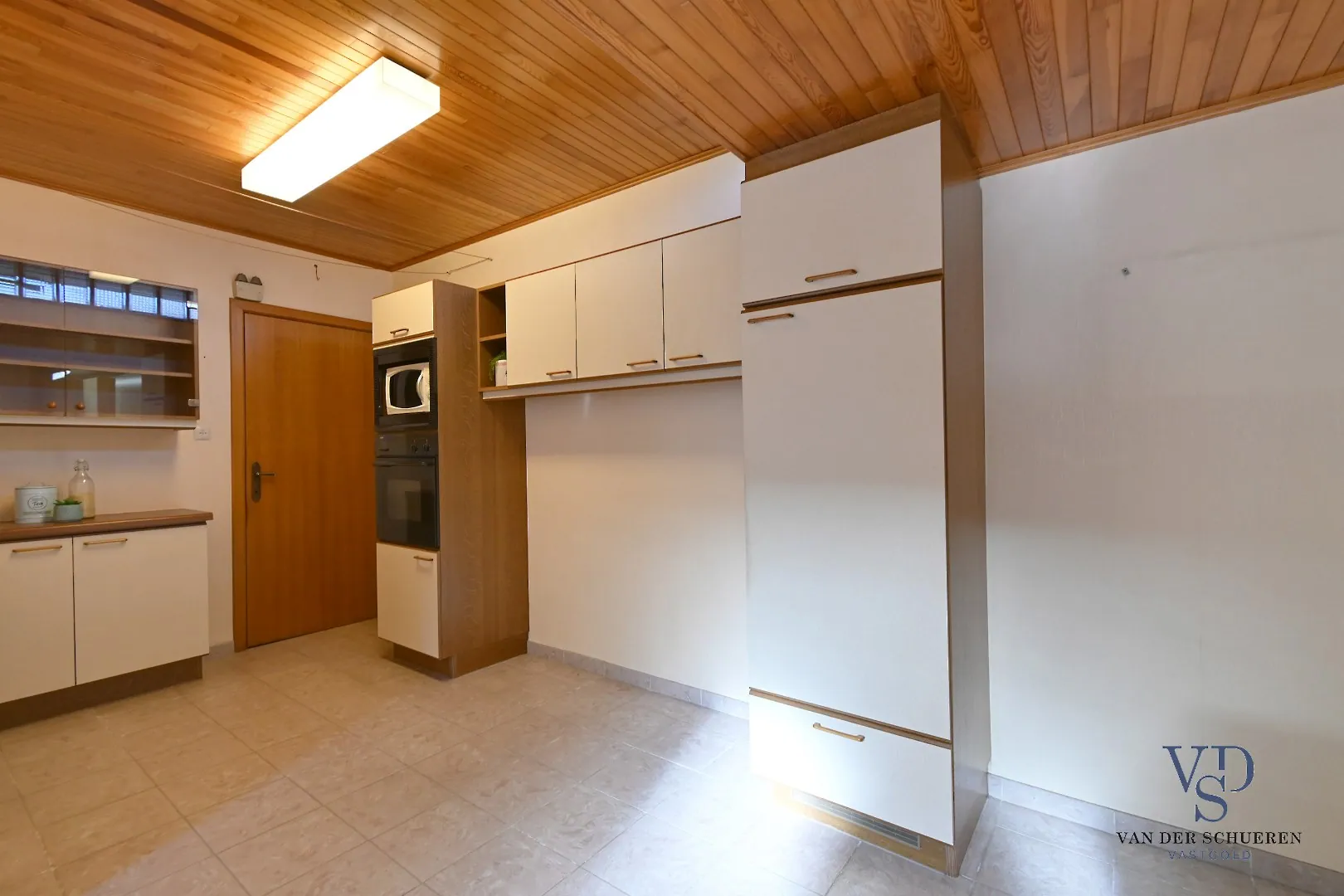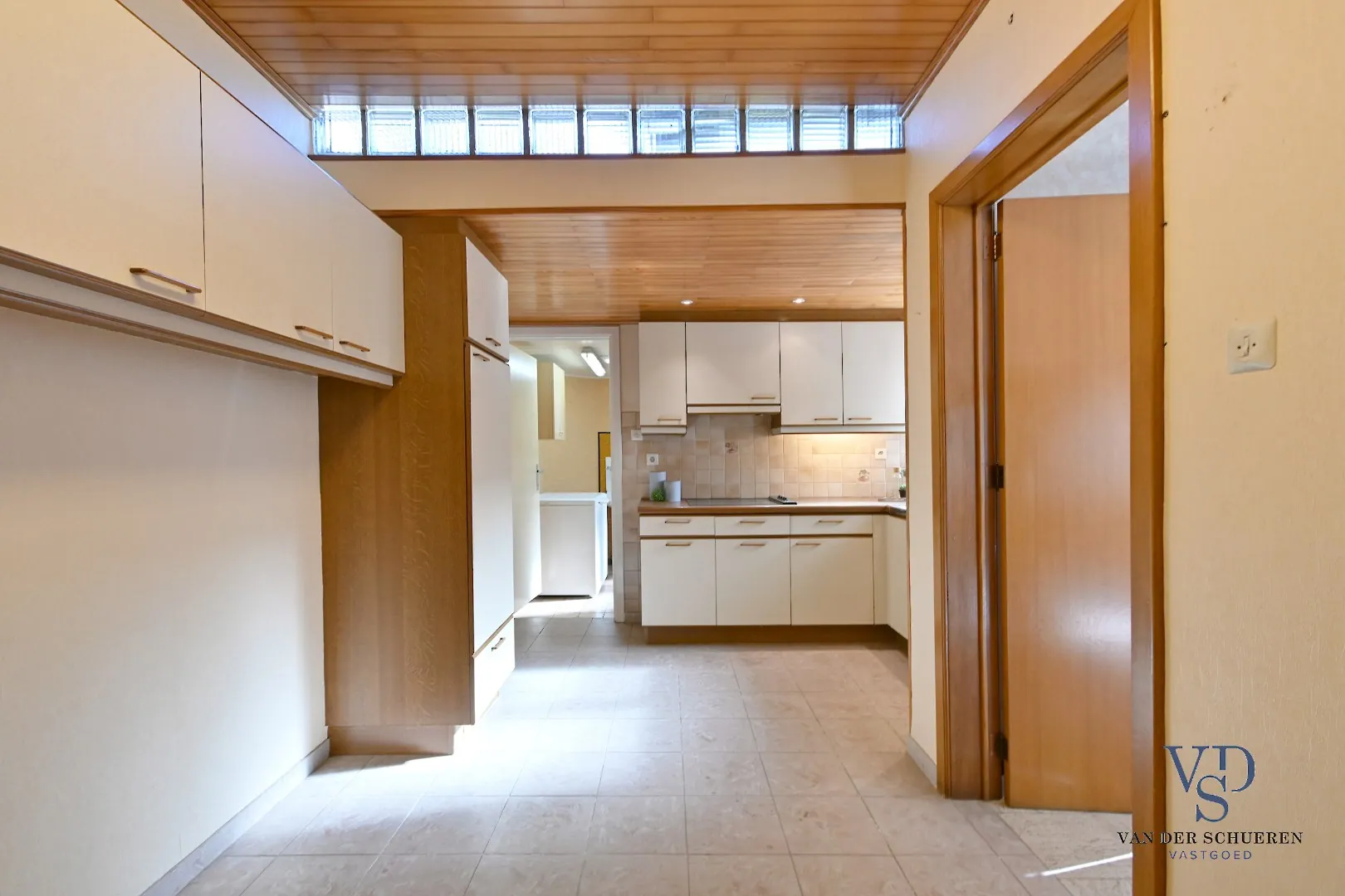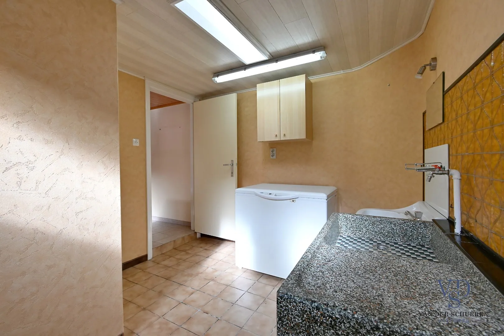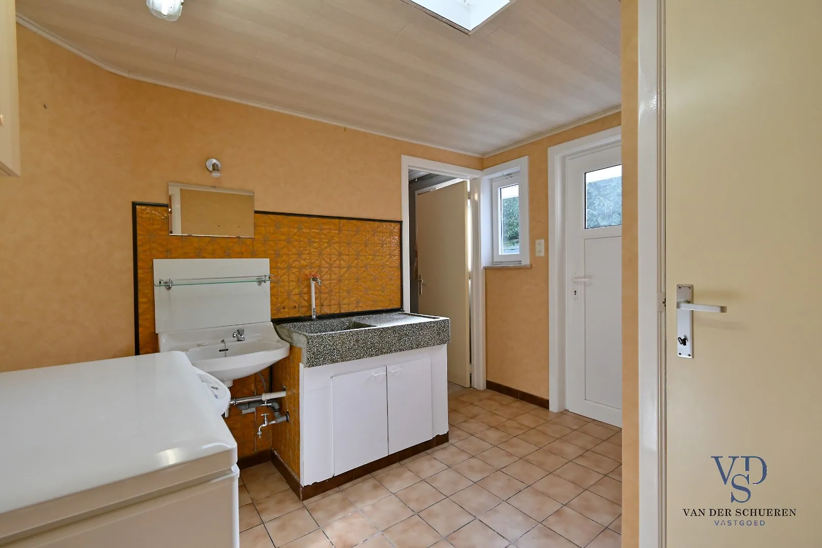 Deze ruime halfopen bebouwing is op het gelijkvloers voorzien van een aangename inkomhal, ruime leefruimte, keuken, wasplaats & bergruimte.