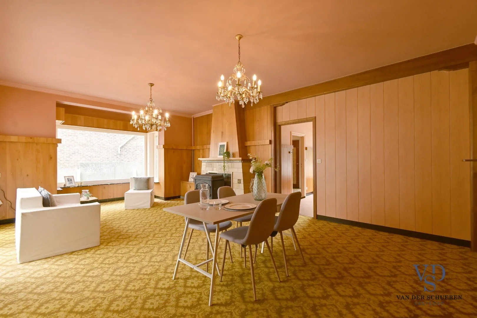 Deze tijdloze villa huisvestte vroeger een kapsalon. Deze ruime, multifunctionele ruimte langsheen de Steenweg biedt dus tal van mogelijkheden. De lichtrijke leefruimte situeert zich achterliggend, welke eveneens aansluit op de keuken. Naast de afzonderlijke garage treffen we nog een achterliggende berging / wasplaats.