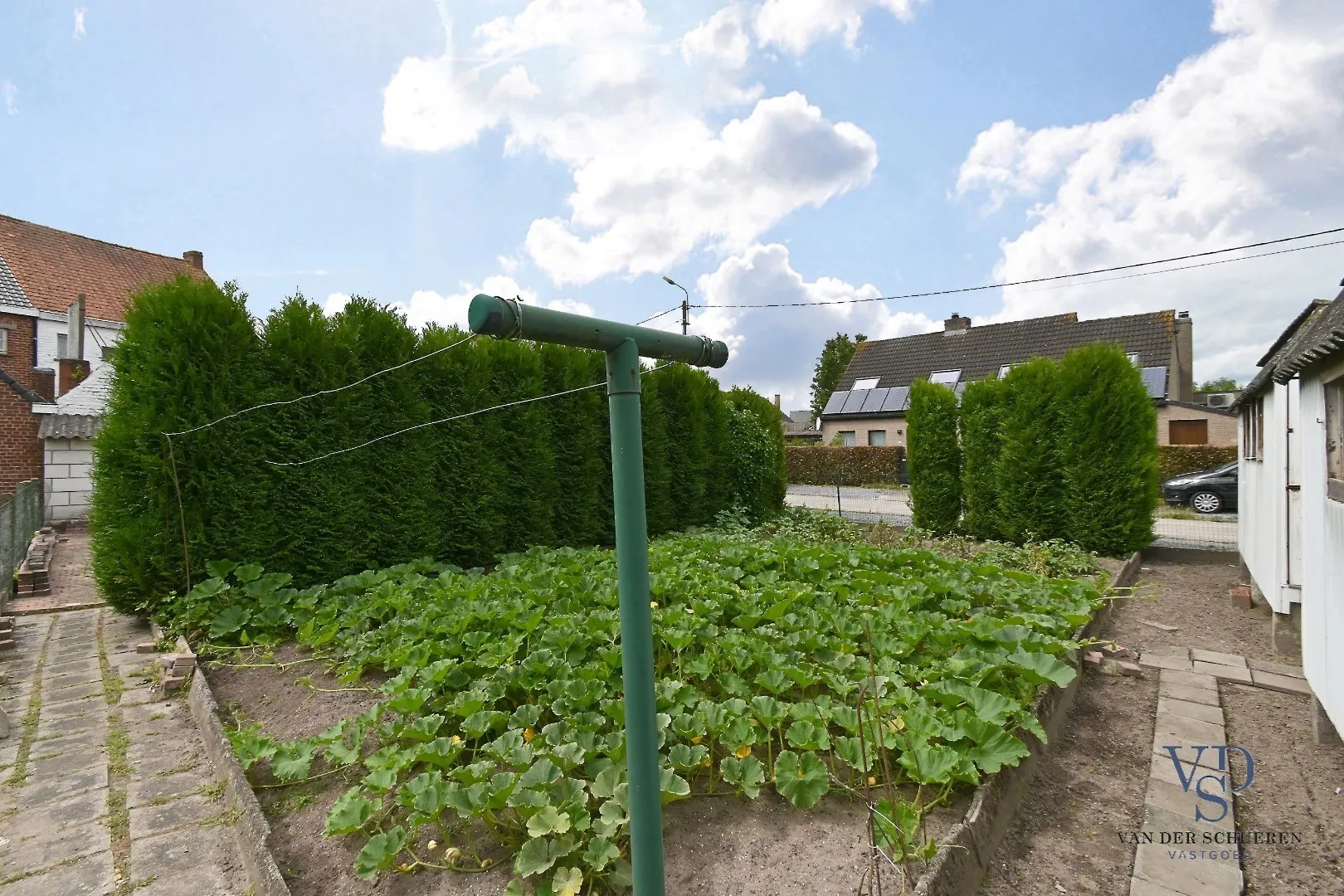 Eveneens een bijzondere troef is dat de tuin de ganse dag in de zon ligt, en dit dankzij de open ruimte van de kant van de Kaksdreef (*).
