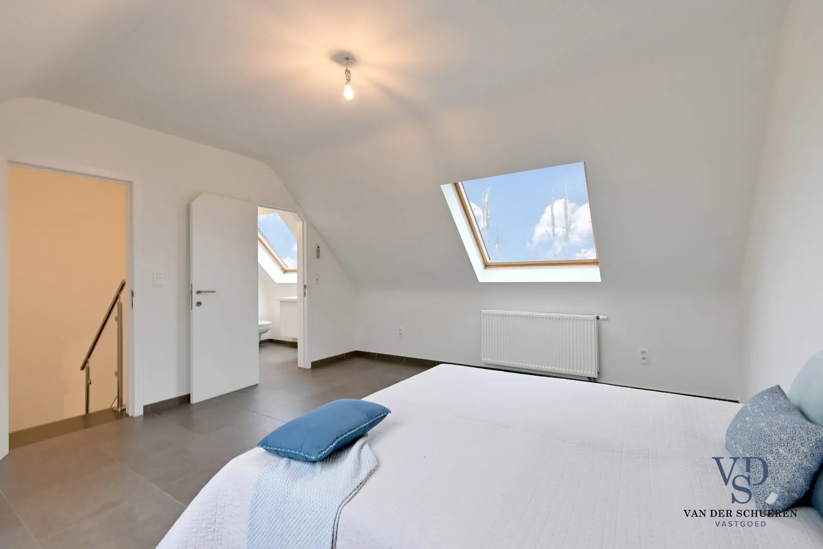 De tweede verdieping telt een 4de kamer en tweede badkamer.