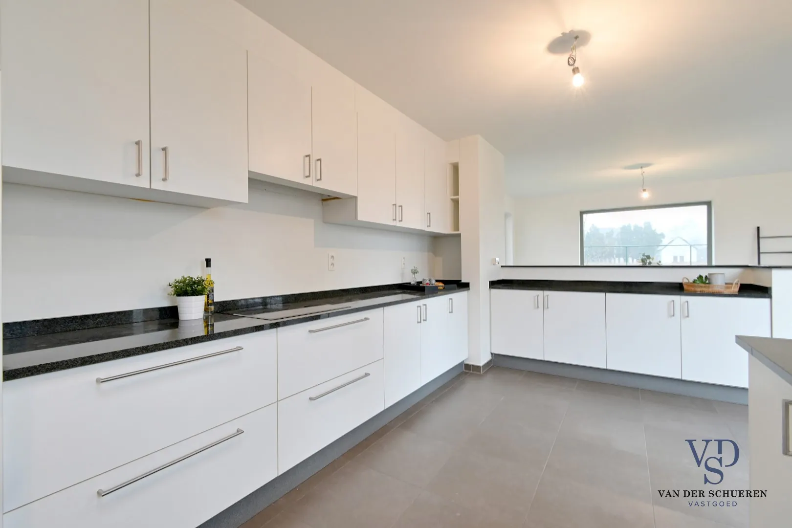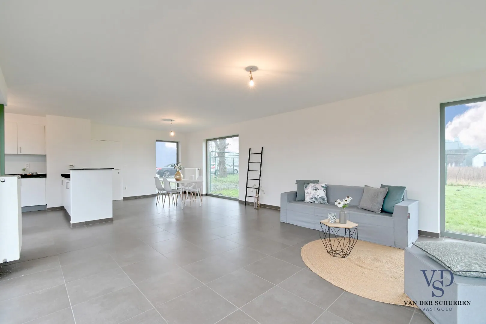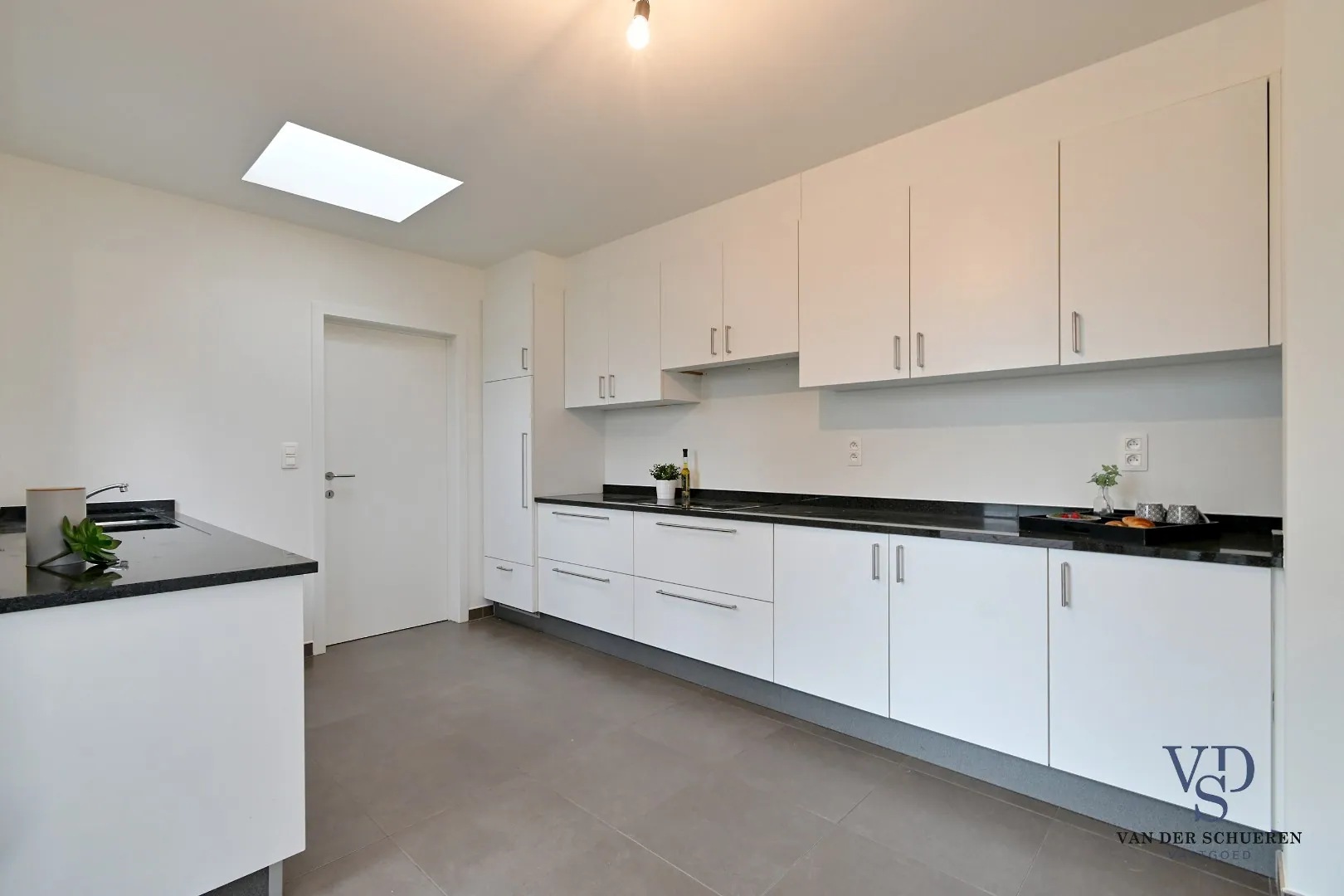 Zo beschikt het gelijkvloers over een inkomhal, ruime leefruimte met open keuken, wasplaats, afzonderlijke berging, toilet en slaapkamer/bureel.