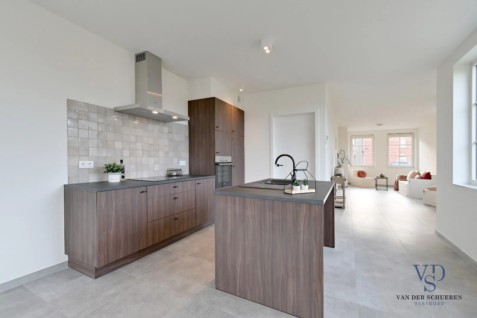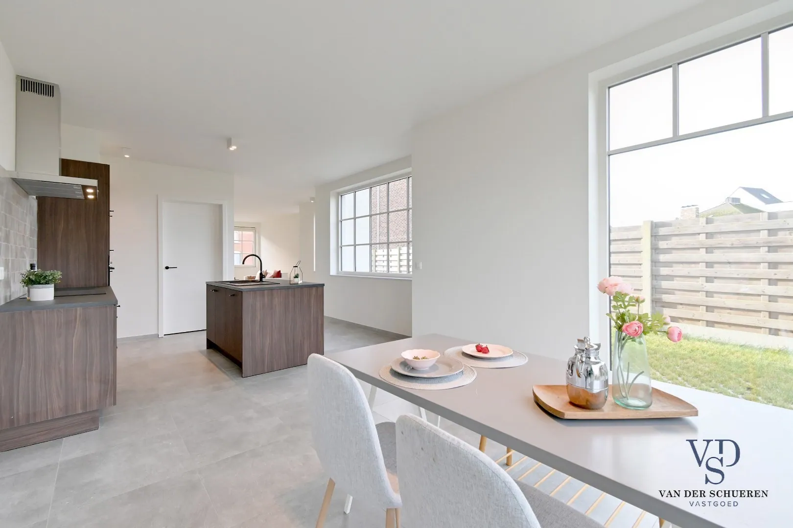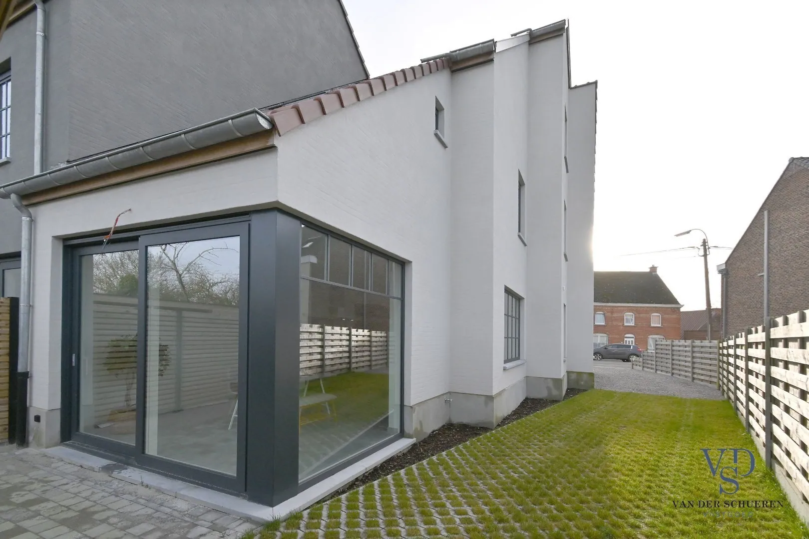 De woning werd volledig afgewerkt, is geschilderd en wordt verkocht met alle verlichting).