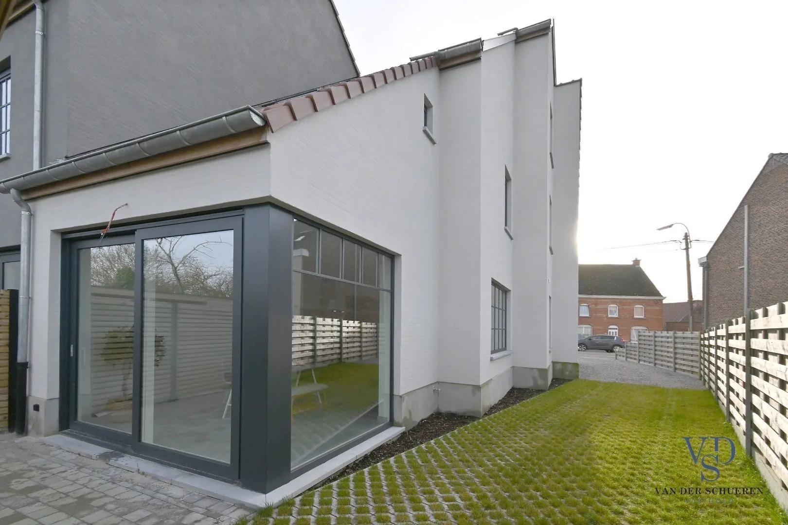 De woning werd volledig afgewerkt, is geschilderd en wordt verkocht met alle verlichting).