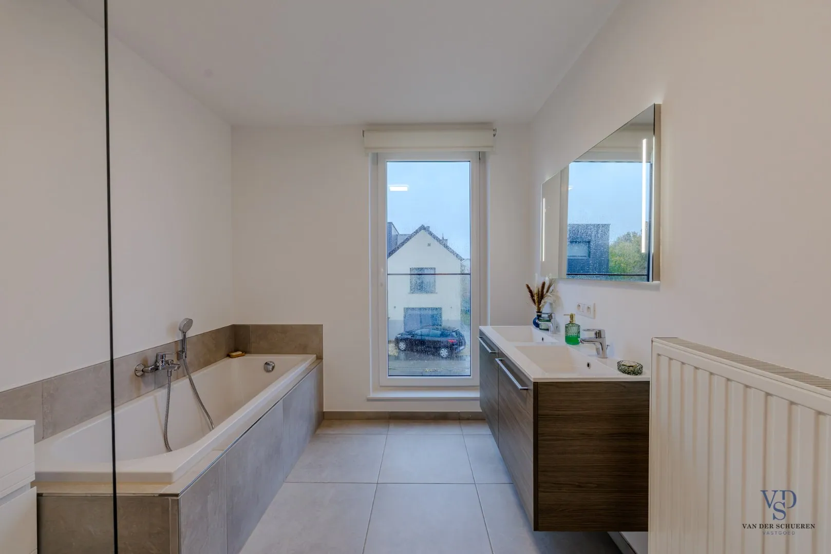 Op de bovenverdieping vind je drie volwaardige slaapkamers, een moderne badkamer met bad, douche en dubbele lavabo, én een apart toilet. Daarnaast is er ook een technische berging voorzien.