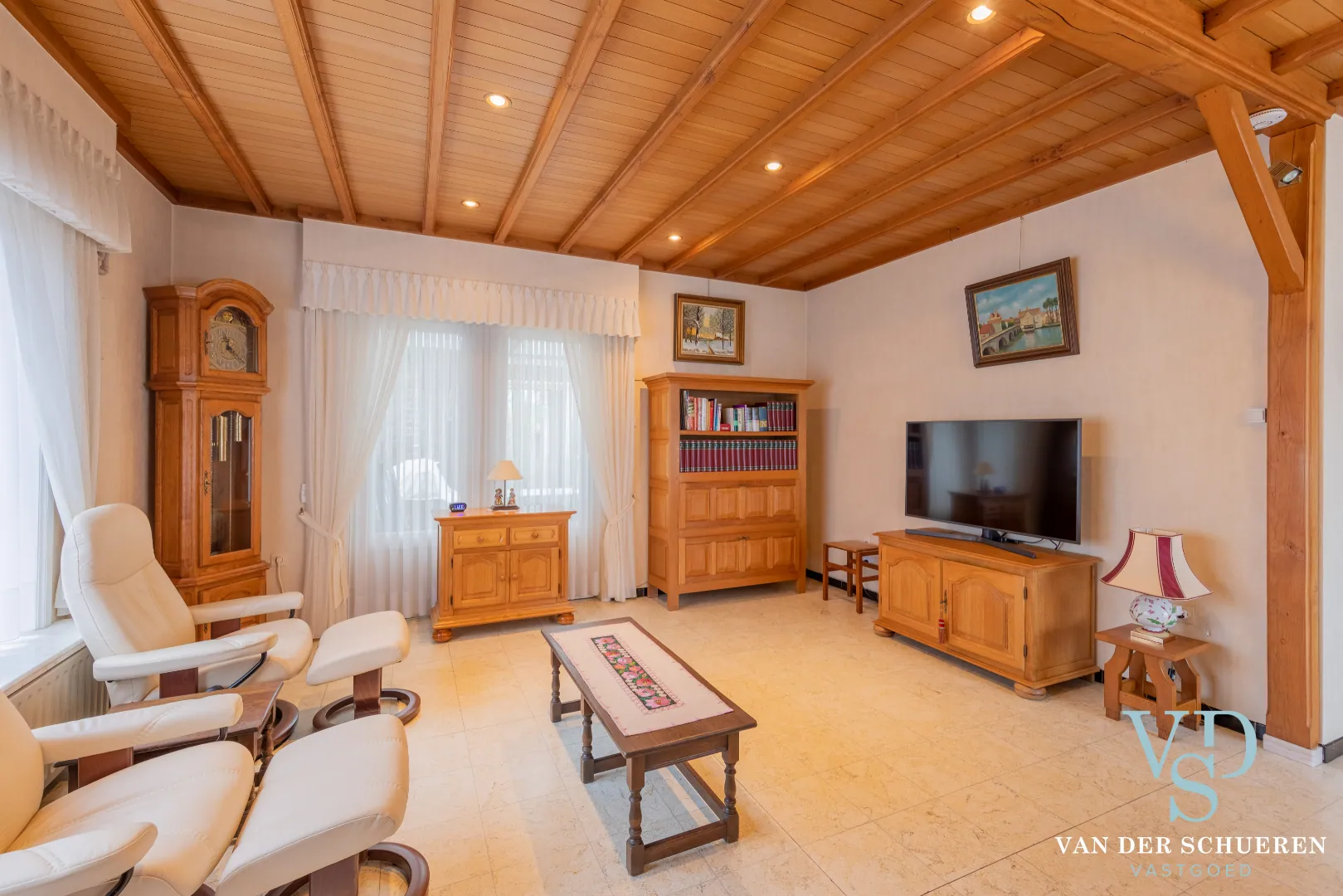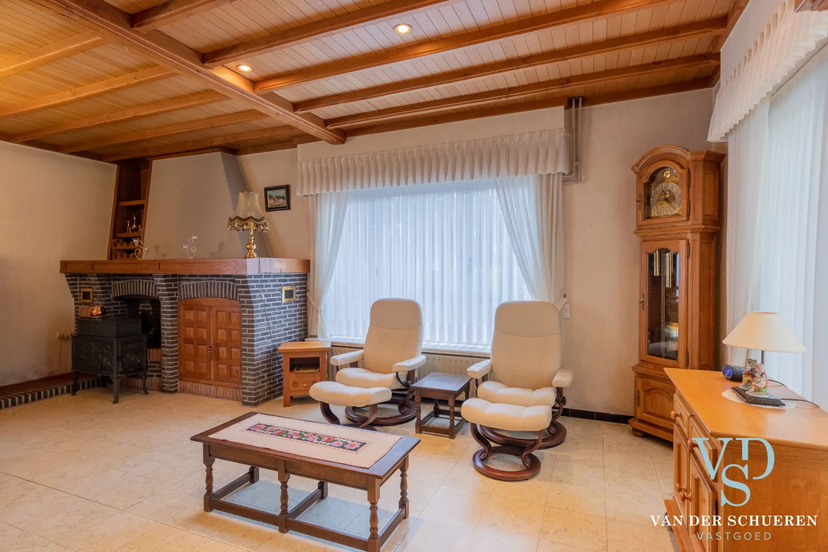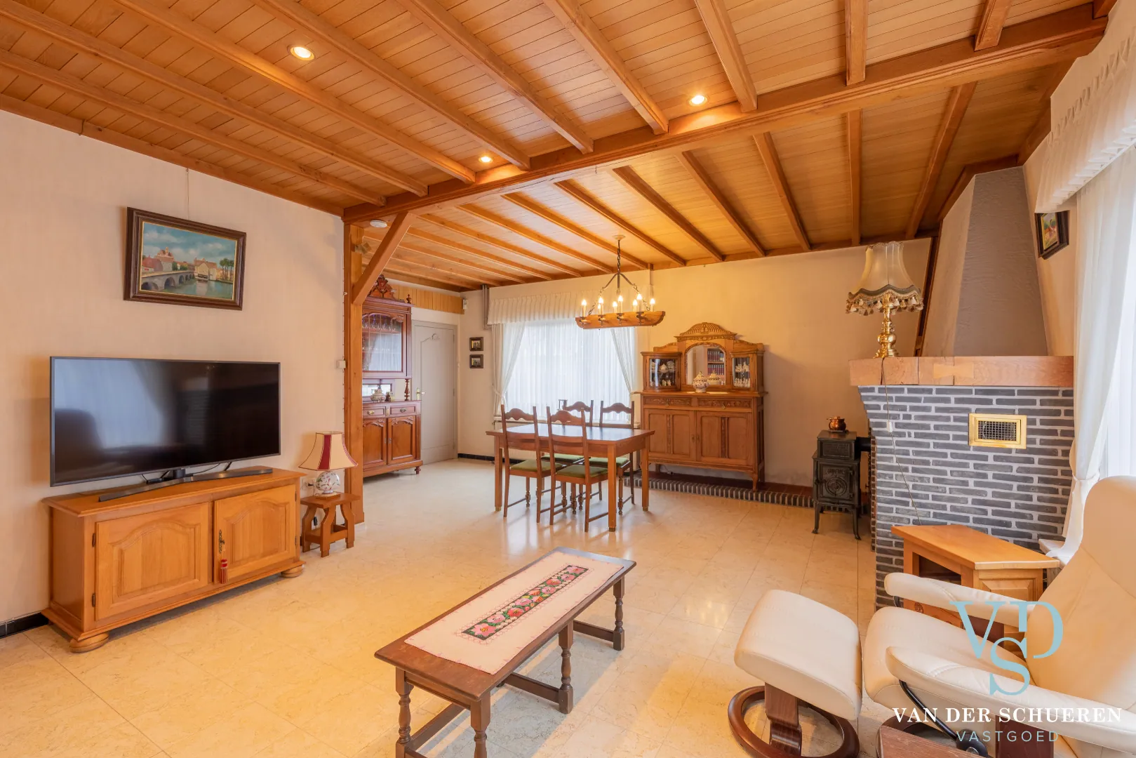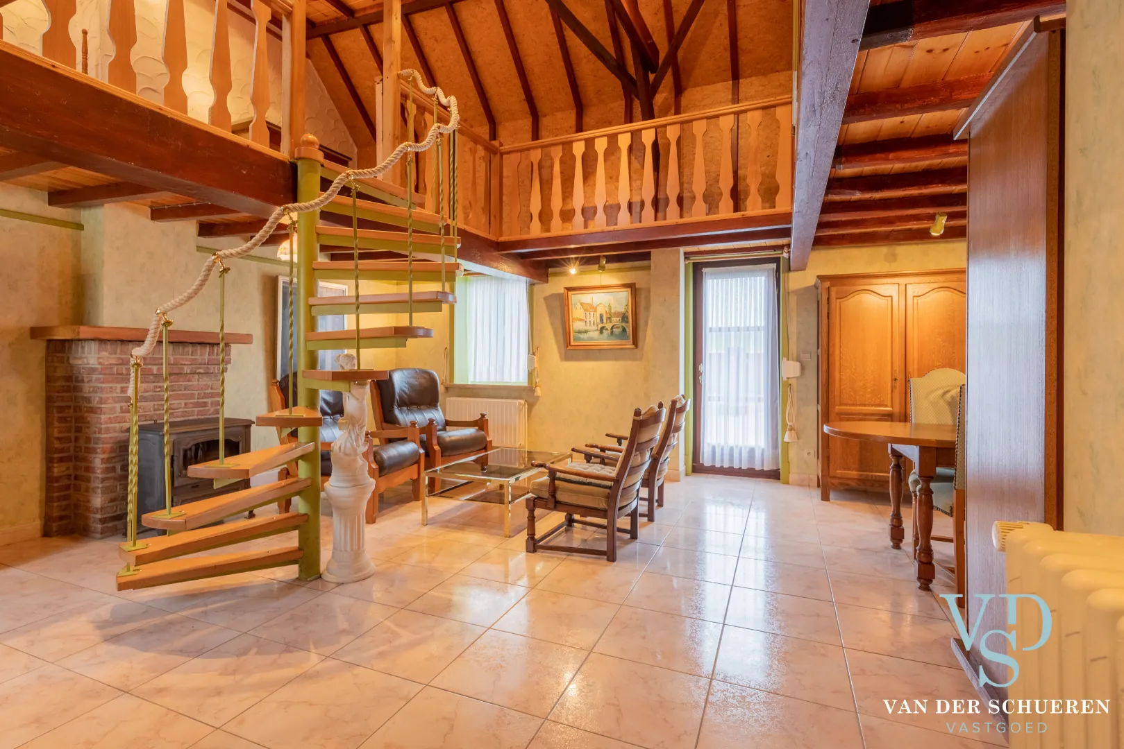 - de aangename leefruimte met open haard, centraal in de woning gesitueerde keuken met aansluitende badkamer, toilet, slaapkamer, multifunctionele ruimte (gelijkvloers niveau);