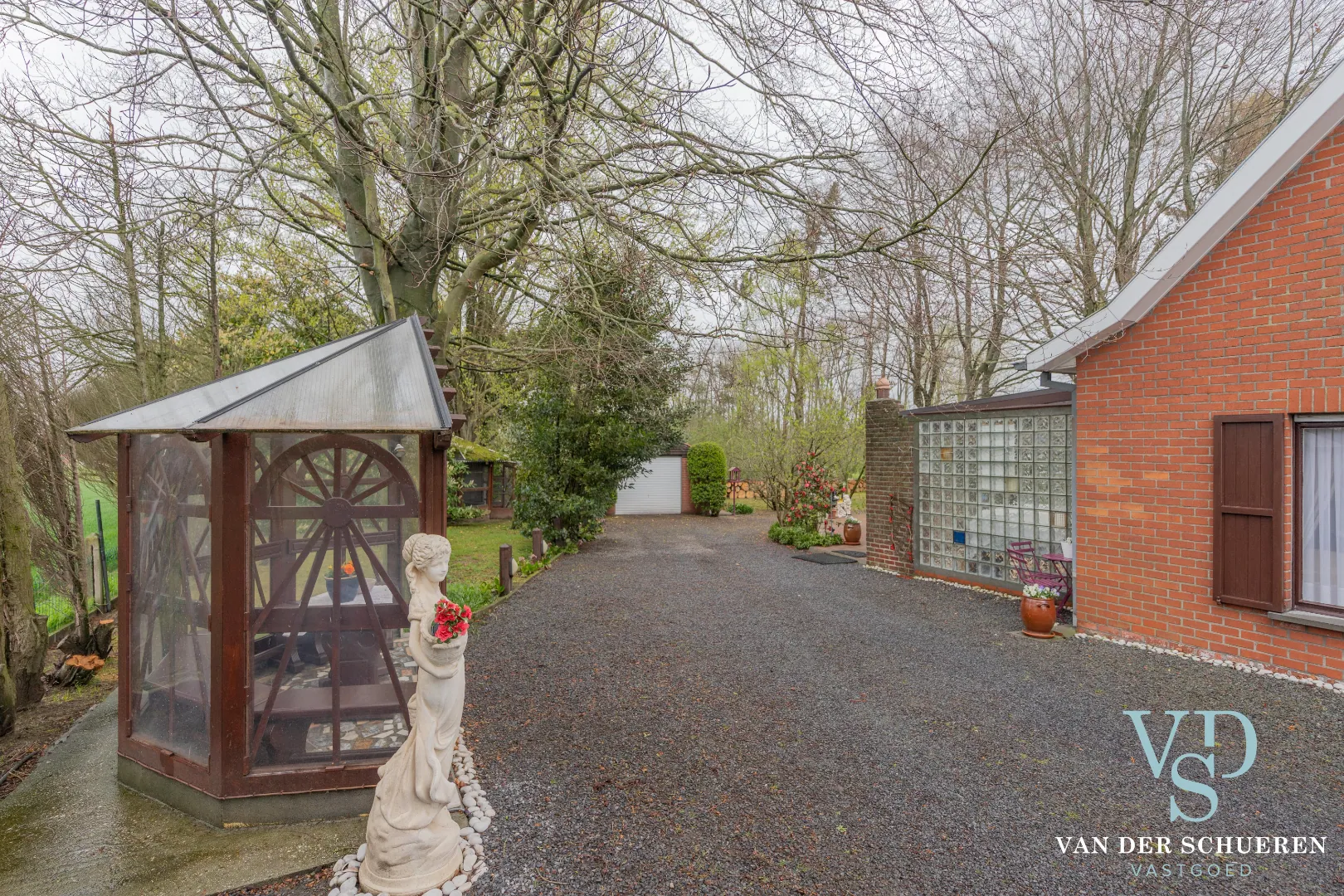 De eigendom is afgesloten met een automatisch hekken.