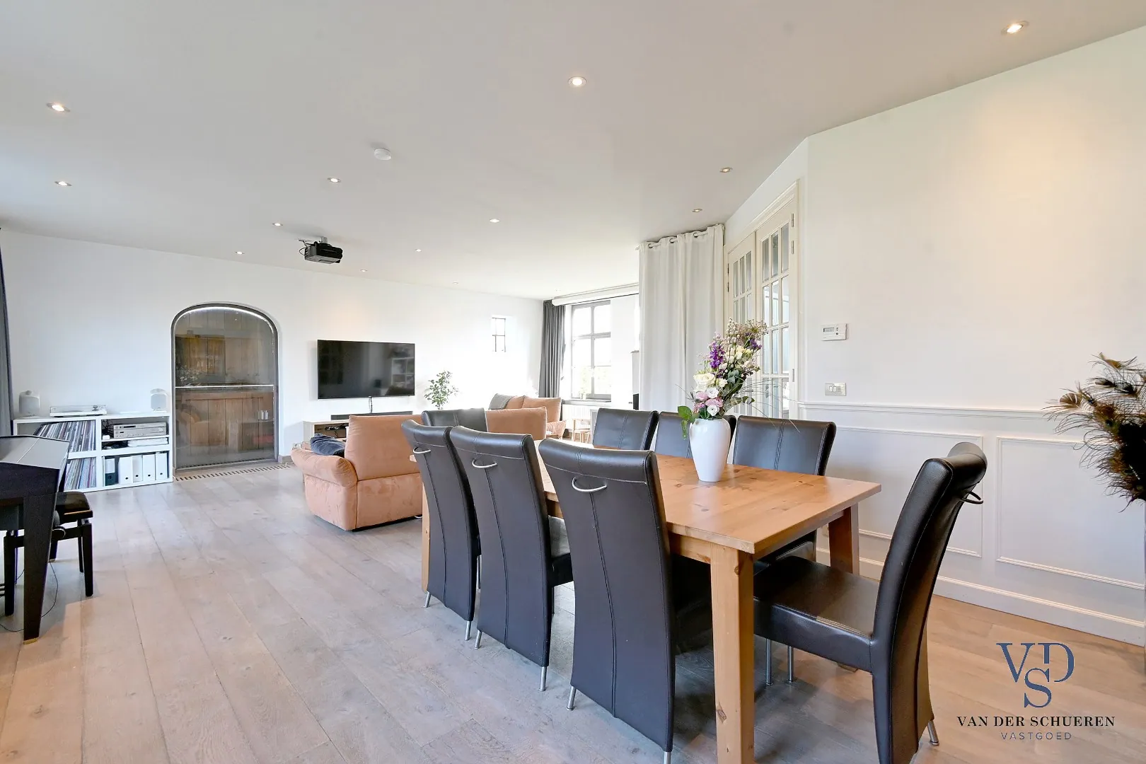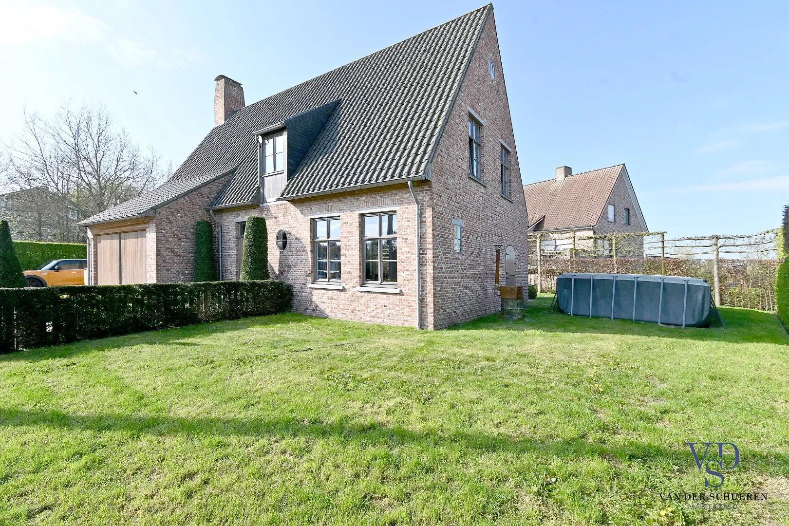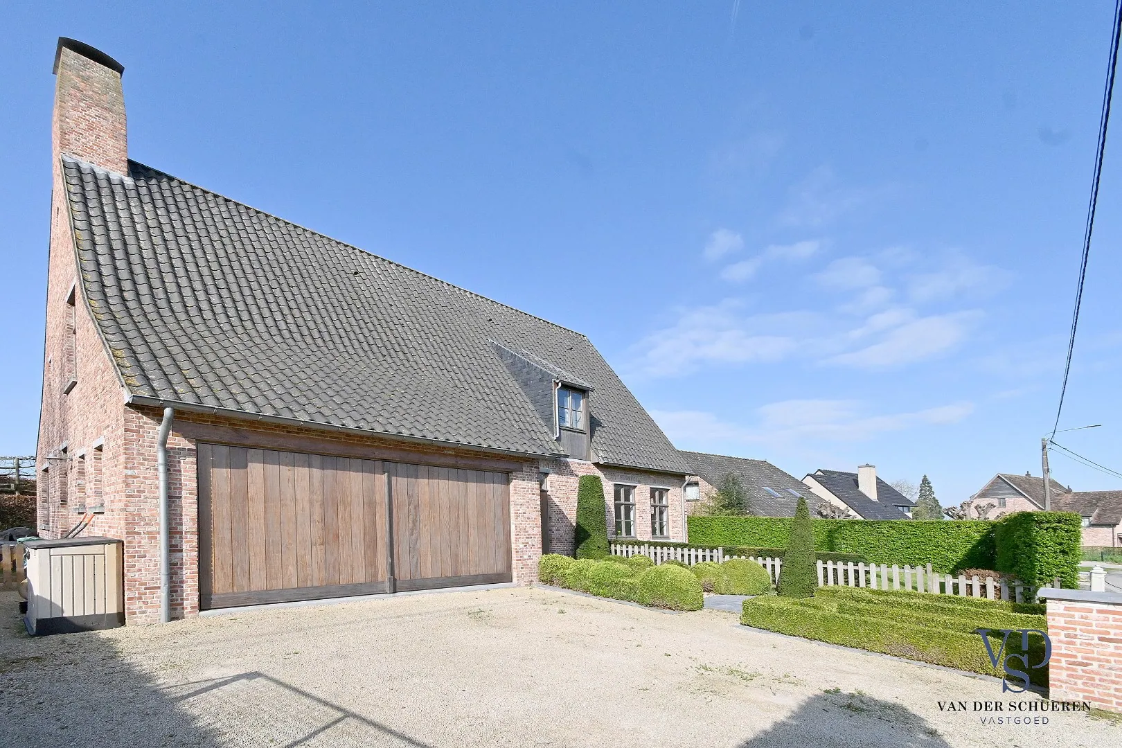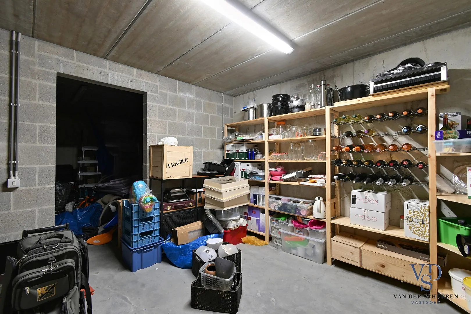 Passende inkomhal. Ruime, lichtrijke leefruimte. Afzonderlijke leefkeuken, met zicht op de tuin. Inpandige garage.