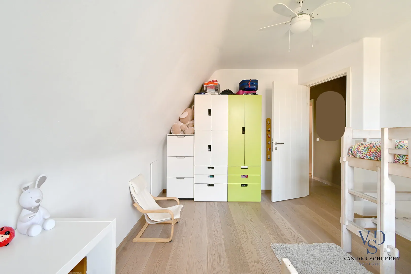 De eerste verdieping bestaat uit drie slaapkamers, hoogwaardige badkamer en overloop met mogelijkheden tot bureel.