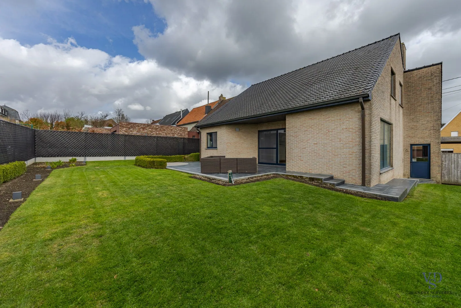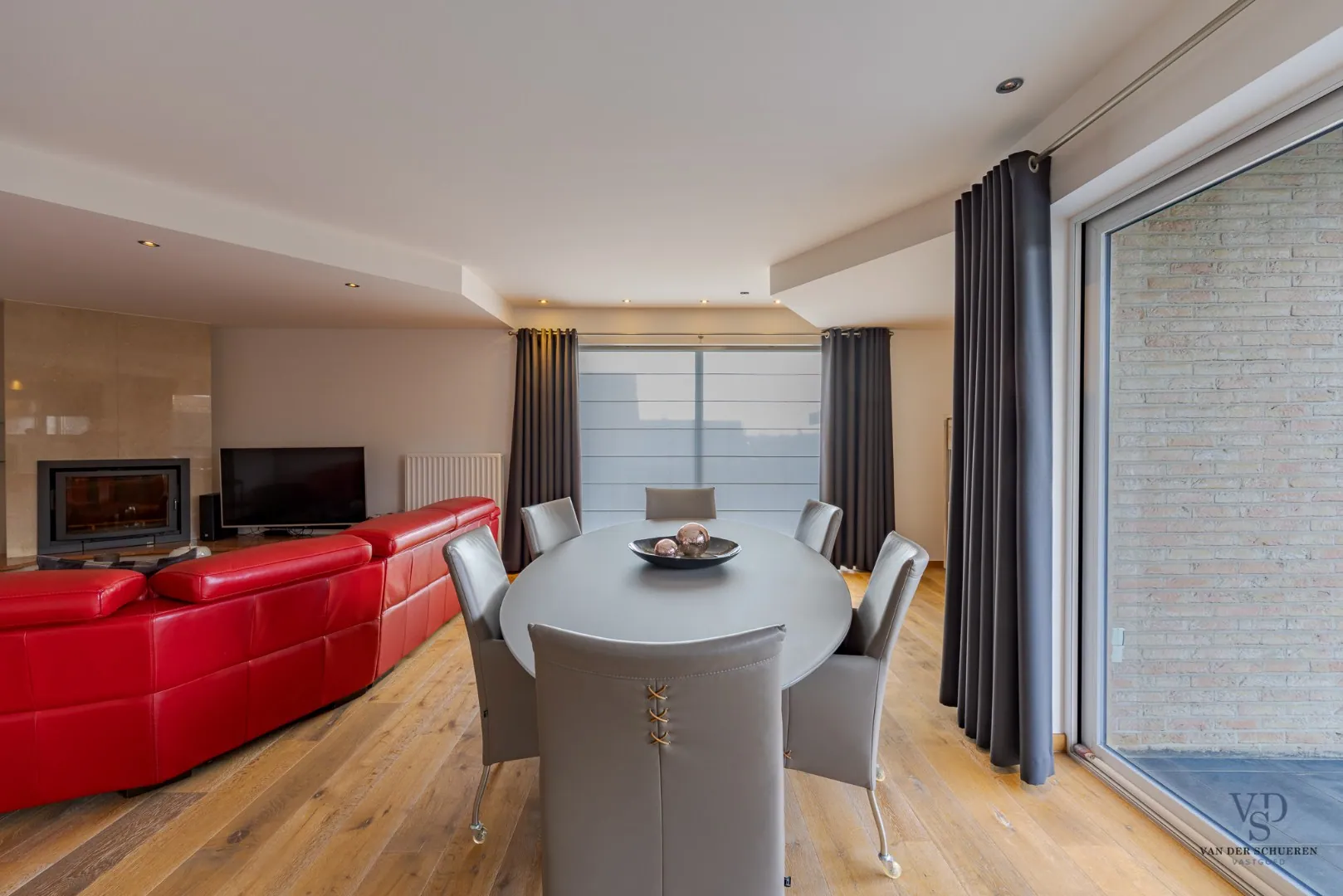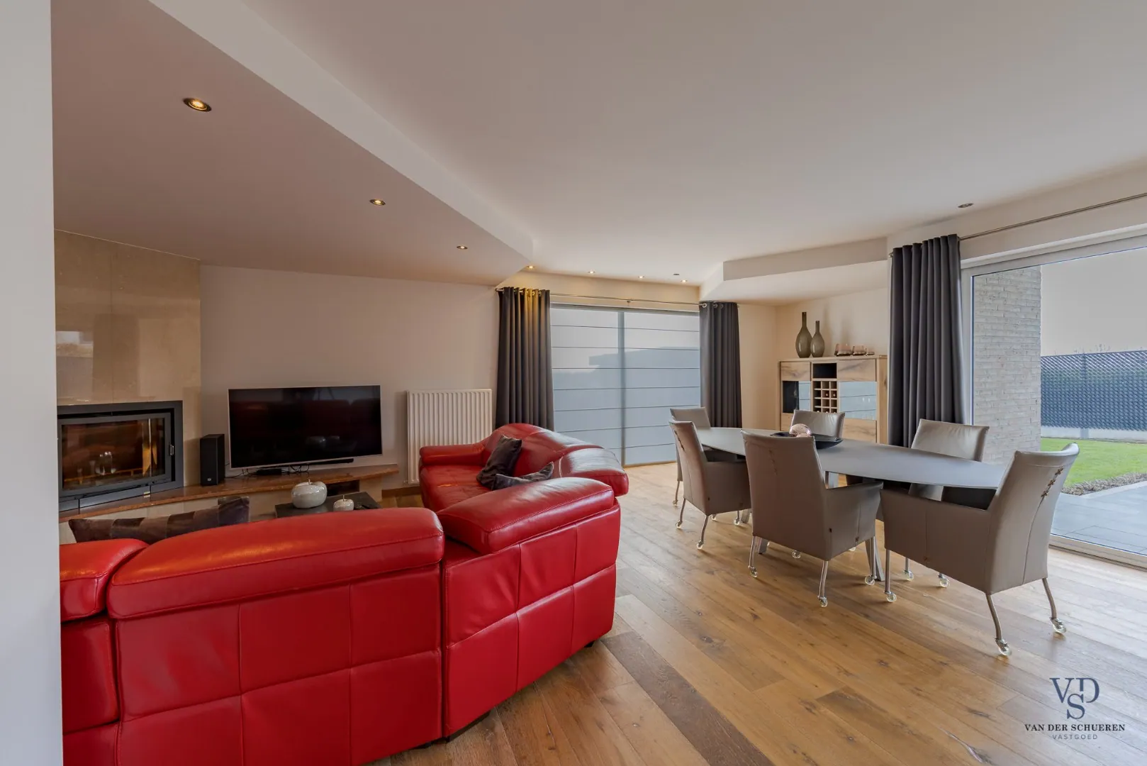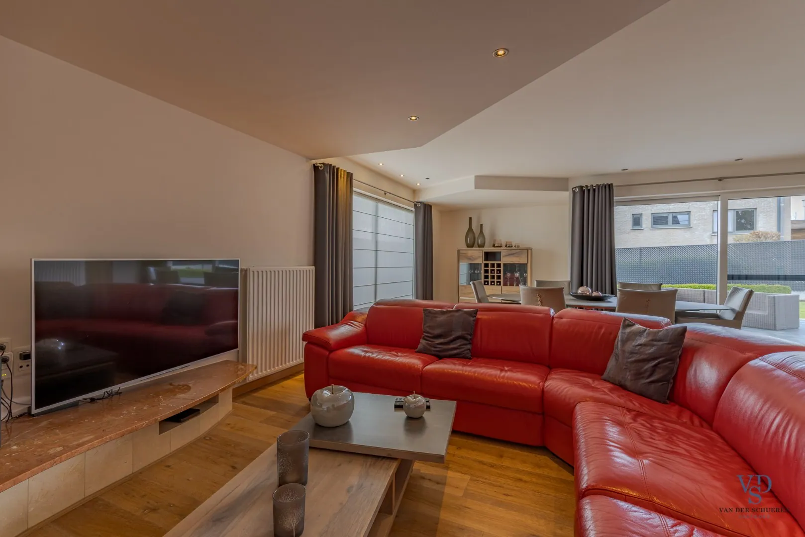 De centrale inkomhal brengt u naar de bar, een ruime plek met tal van invullingsmogelijkheden (zoals een bureel of hobbyruimte), die u vervolgens leidt naar de praktische keuken. De ruime lichtrijke leefruimte sluit hierop mooi aan.