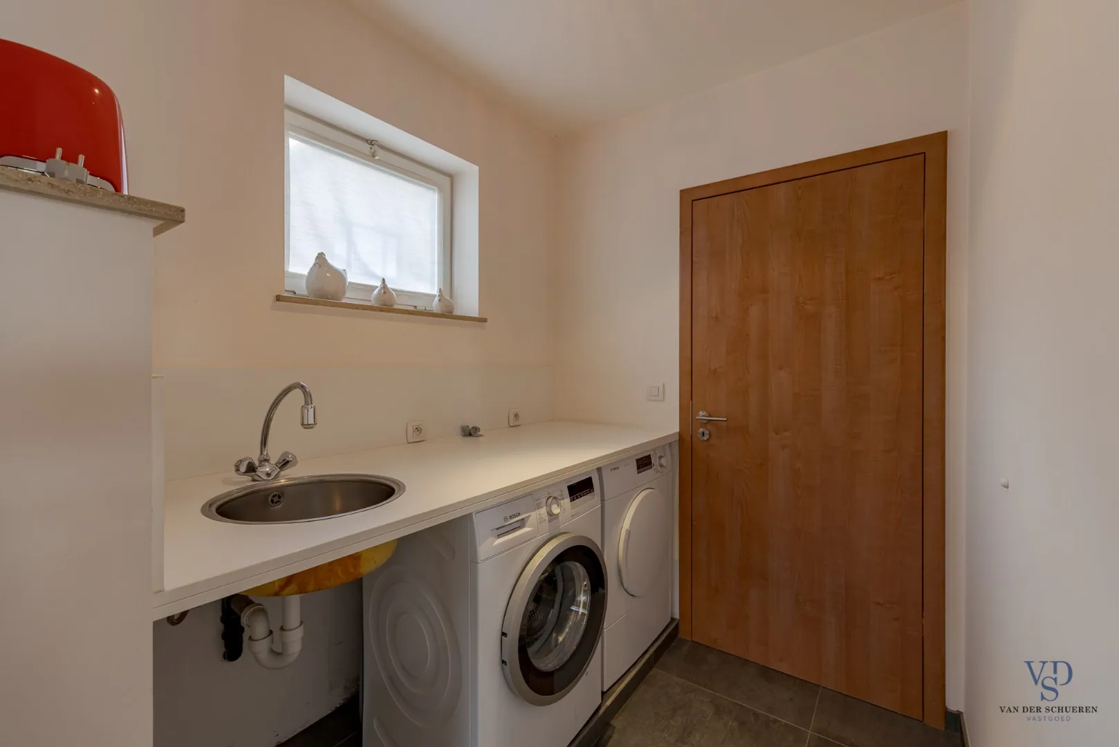 De inpandige garage zorgt natuurlijk voor een handige meerwaarde, net zoals de aanwezige wasplaats.