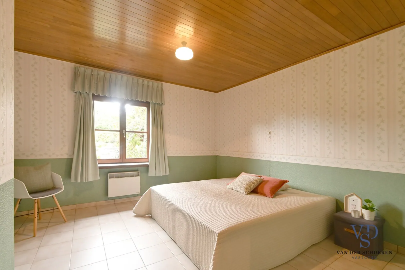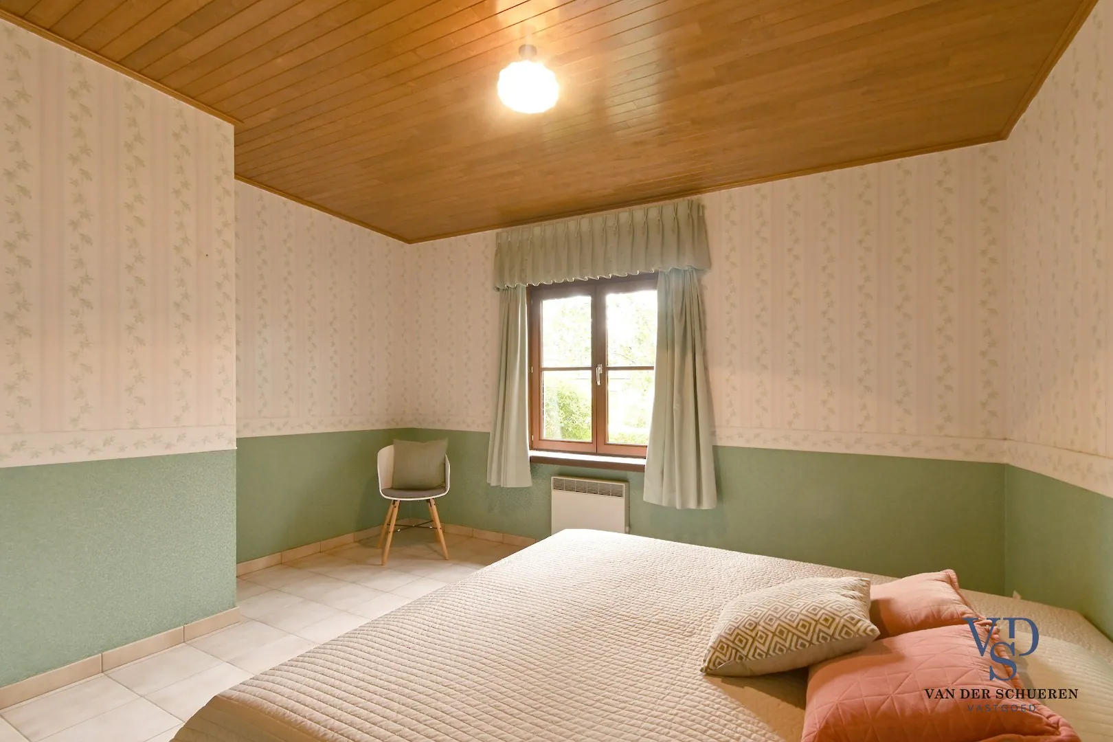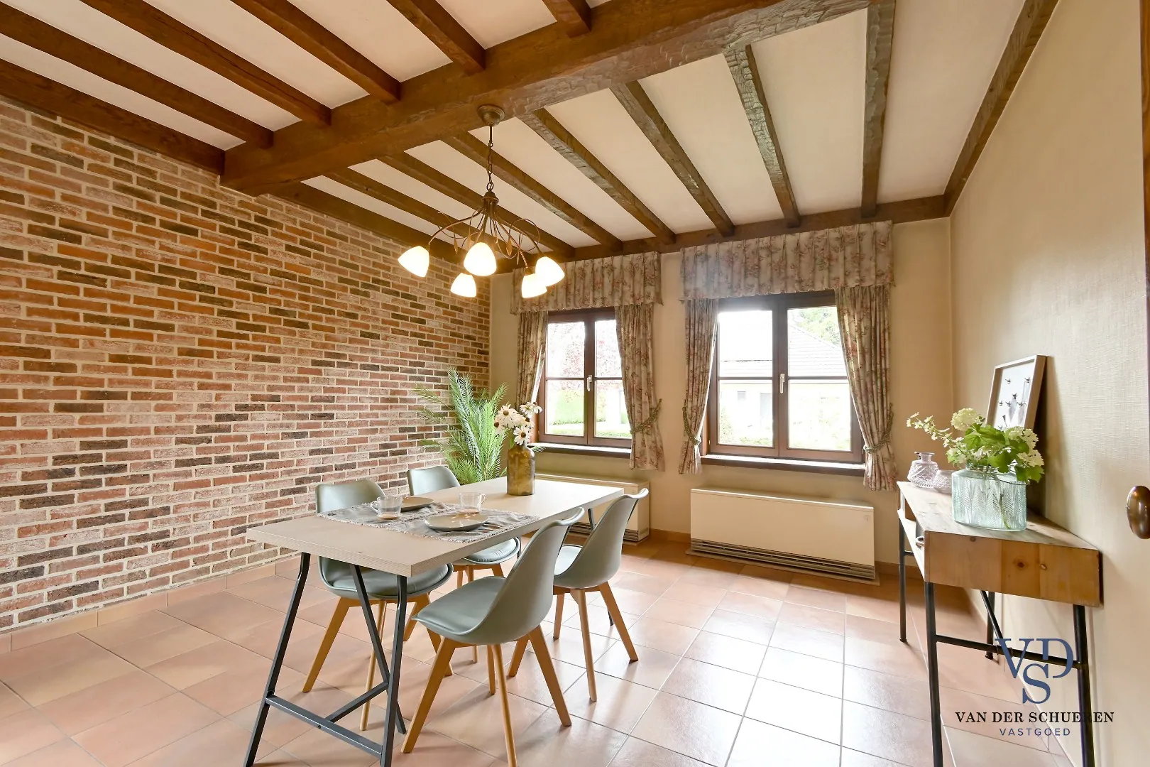 Momenteel is er elektrische verwarming en een kachel aanwezig. Indien deze vervangen worden door een condenserende gaswandketel met radiatoren – die tevens functioneert als doorstromer voor sanitair warm water in keuken en badkamer – daalt het EPC onmiddellijk naar ca. 350, goed voor een D-label. Omdat de zolder niet is afgewerkt, kunnen leidingen zeer eenvoudig via de zolder worden gelegd en vandaar naar de kamers worden doorgetrokken. Dit maakt de ingreep praktisch en kostenefficiënt.