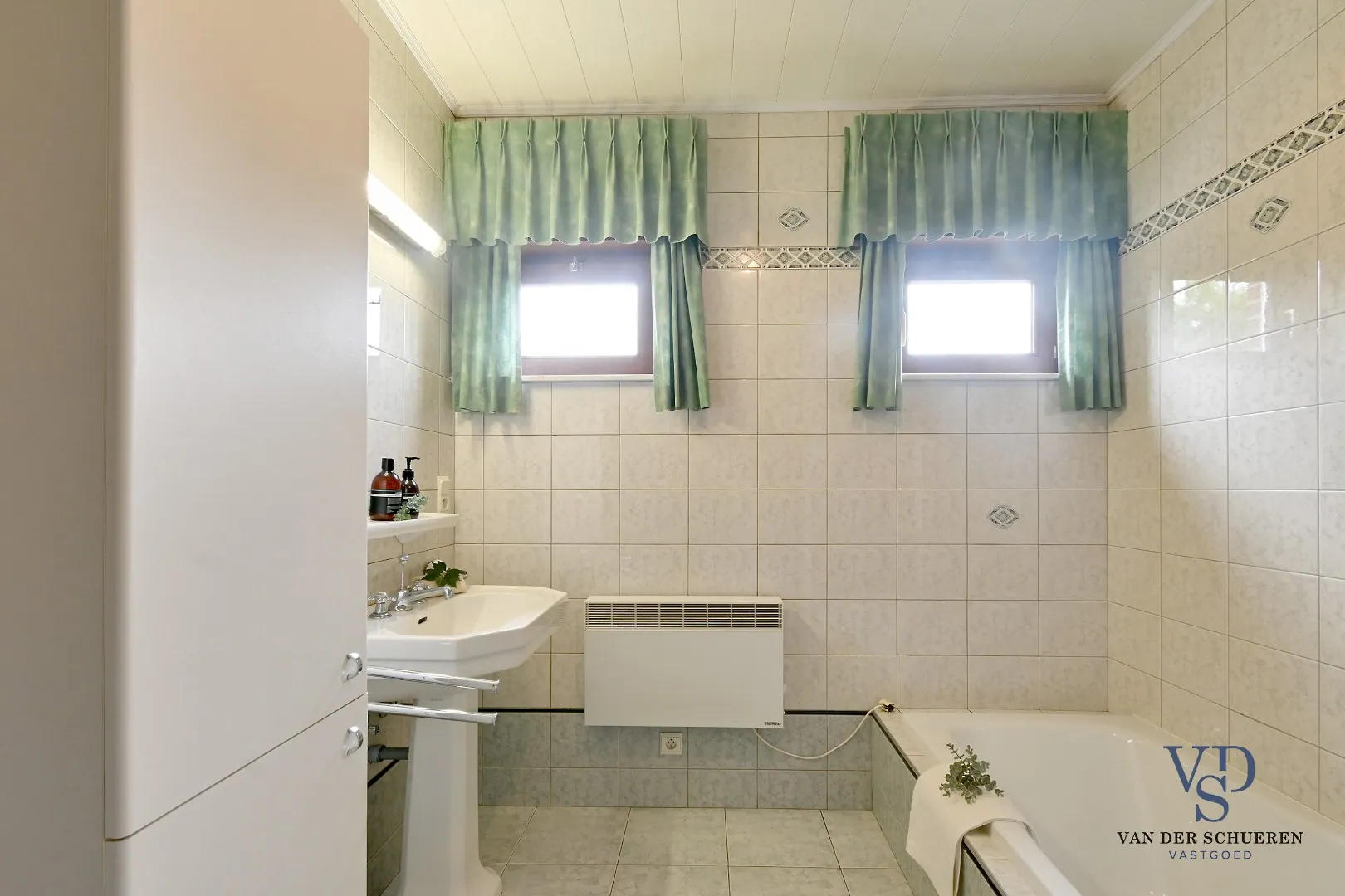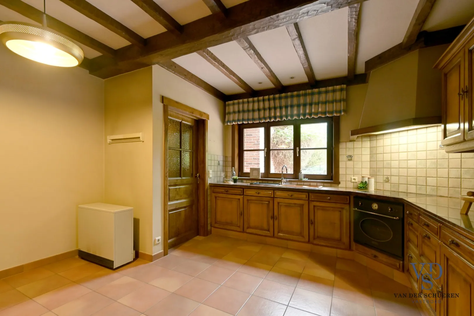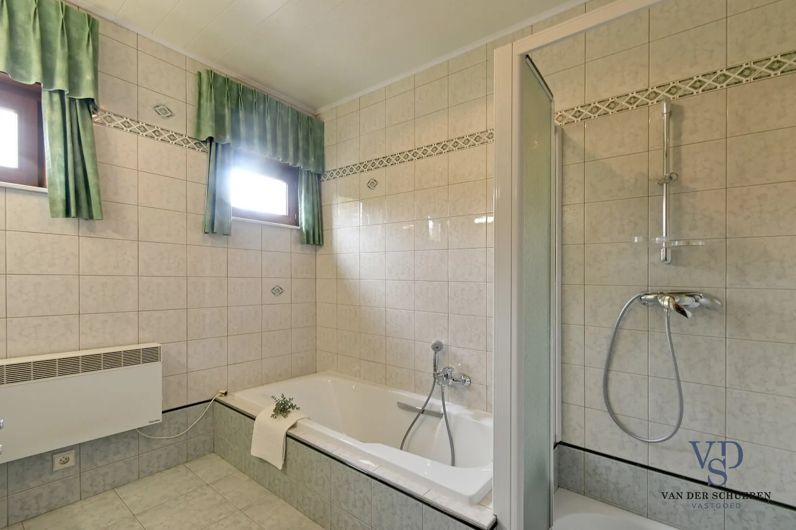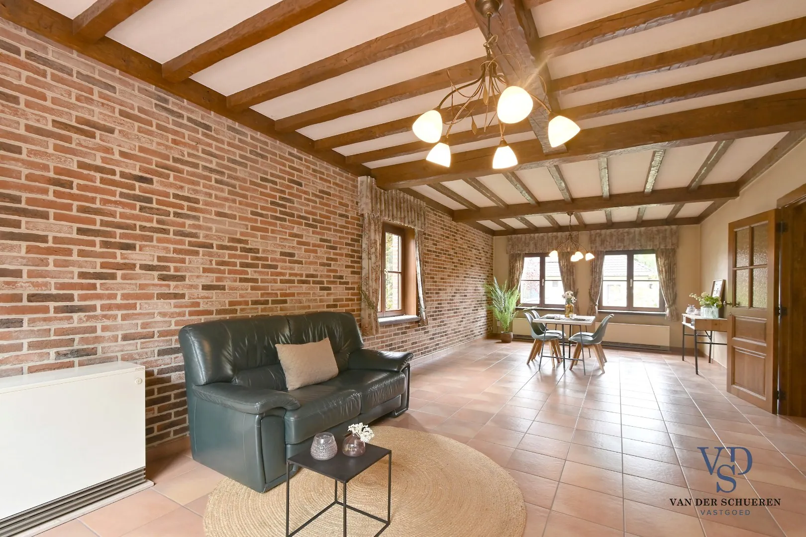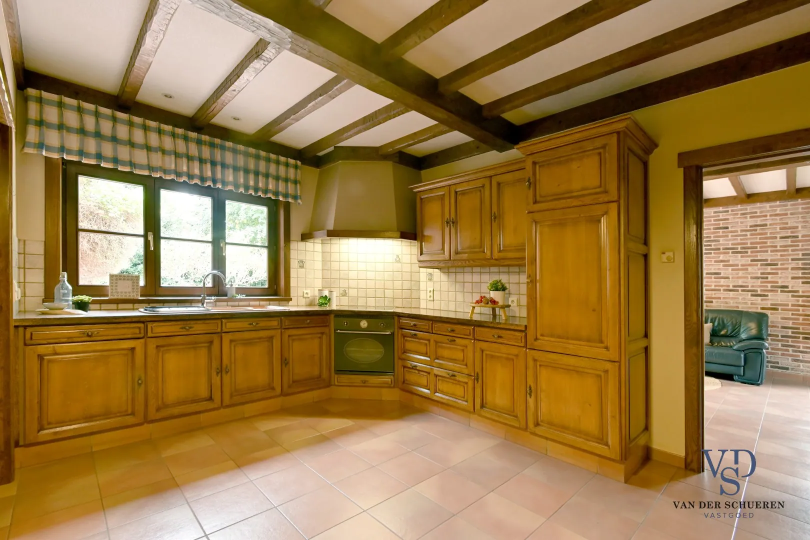 Bouwtechnisch top, dankzij buitenschrijnwerk in afzelia (elk raam is uitgerust met rolluiken), koperen goten, massieve eiken binnendeuren, ontkalker, ... .