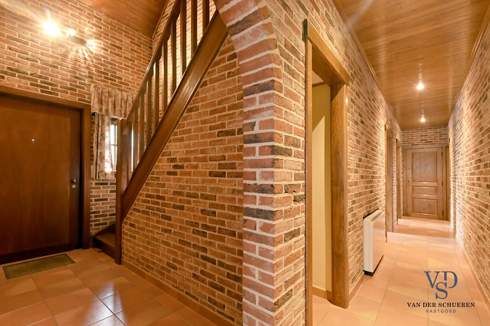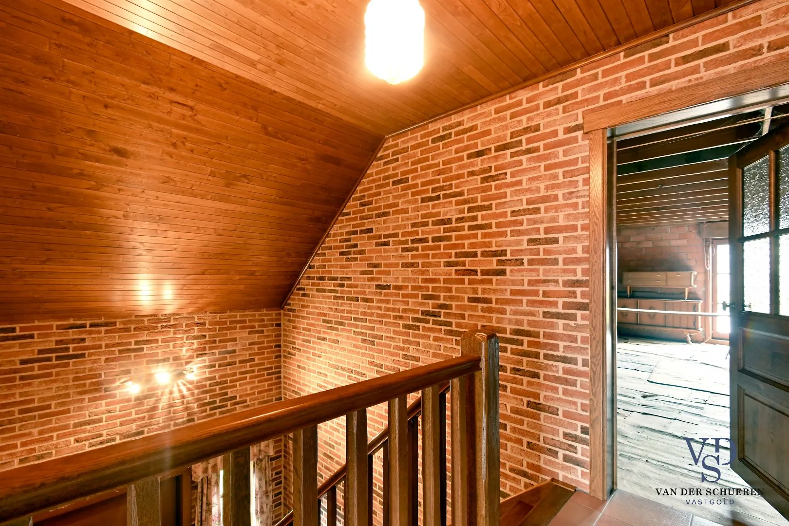 De stijlvolle trappenhal leidt naar de nog af te werken zolder (met betonnen vloer). Dankzij deze ruimte zijn er talrijke uitbreidingsmogelijkheden.