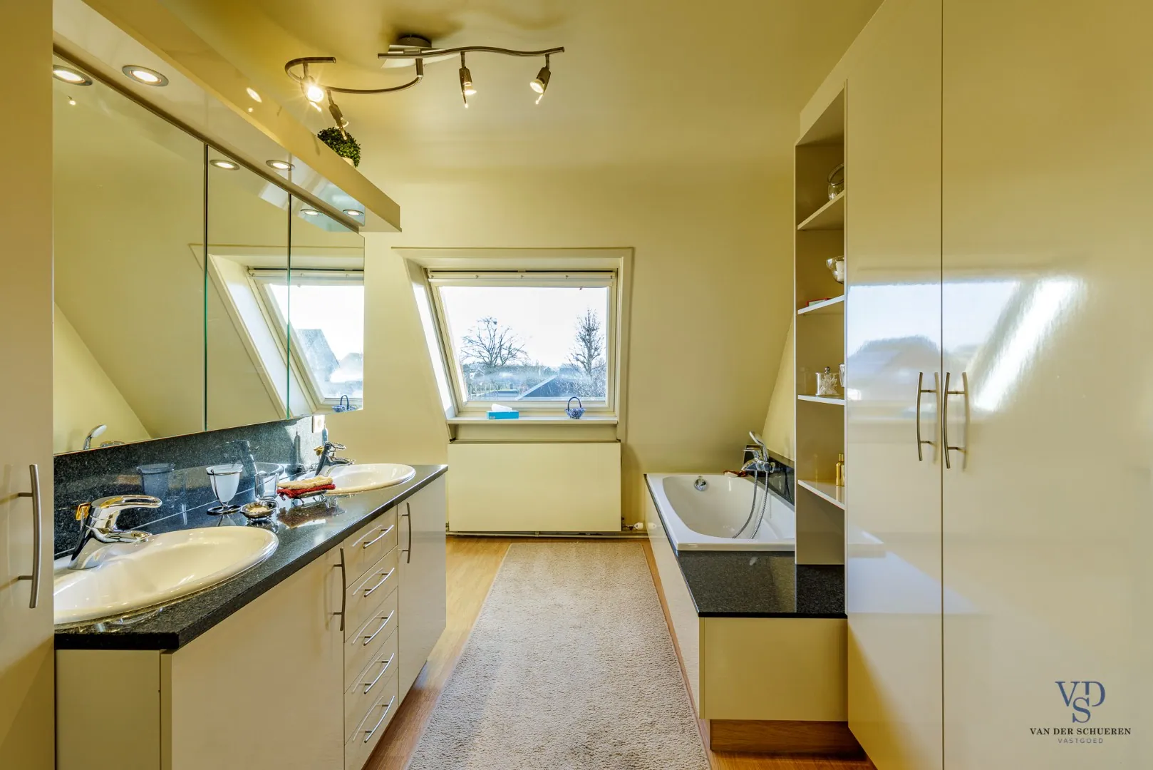 De woning onderscheidt zich verder door haar hoge functionaliteit: een inpandige garage met automatische poort, douche en wasplaats, aangevuld met een tweede, afzonderlijke garage - eveneens voorzien van een automatische poort.