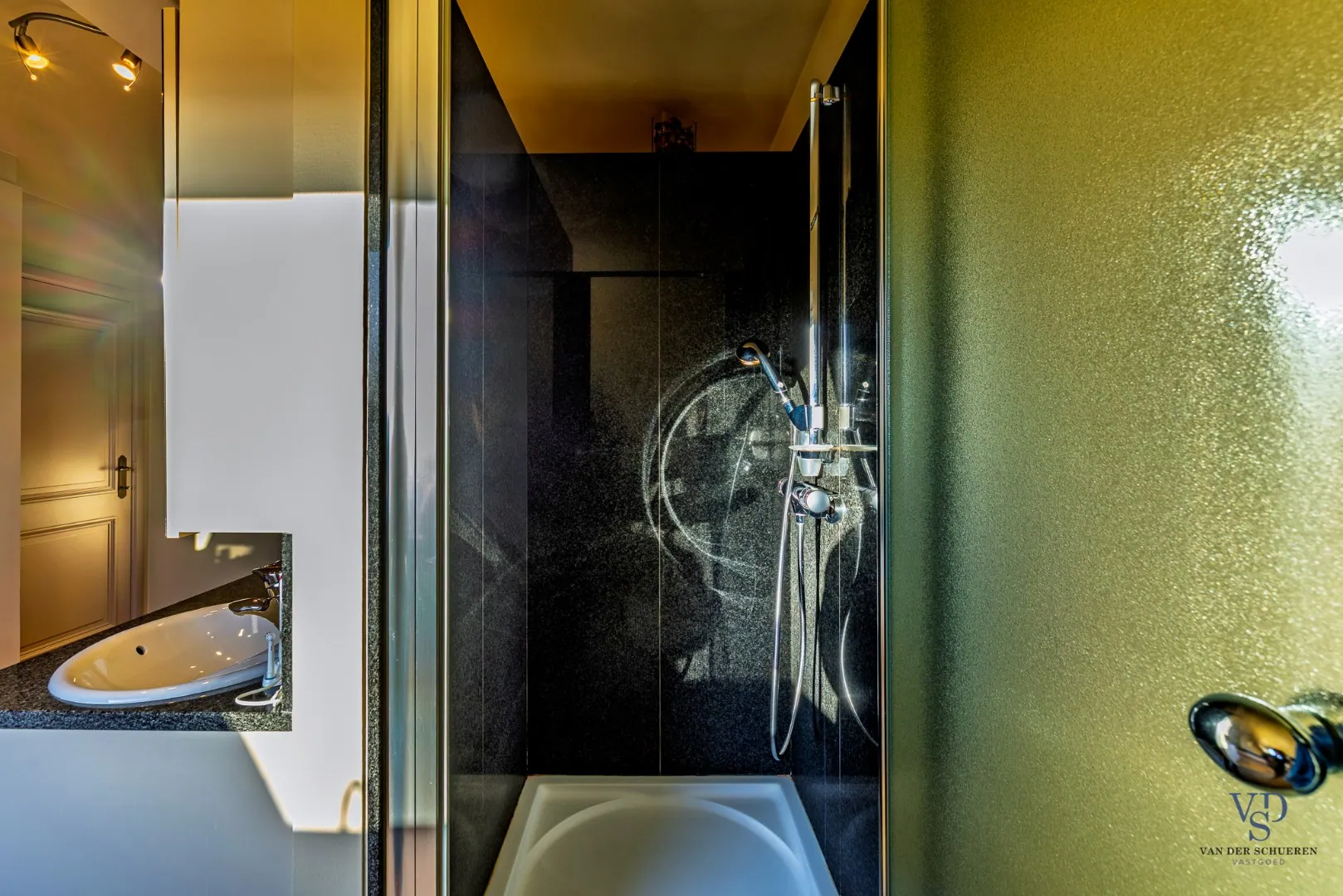 U wordt verwelkomd in een stijlvolle inkomhal, die meteen de passende indruk geeft. Van de hal heeft u toegang tot een afzonderlijk gastentoilet, een praktische bureauruimte en de naar de tuin georiënteerde leefruimte.