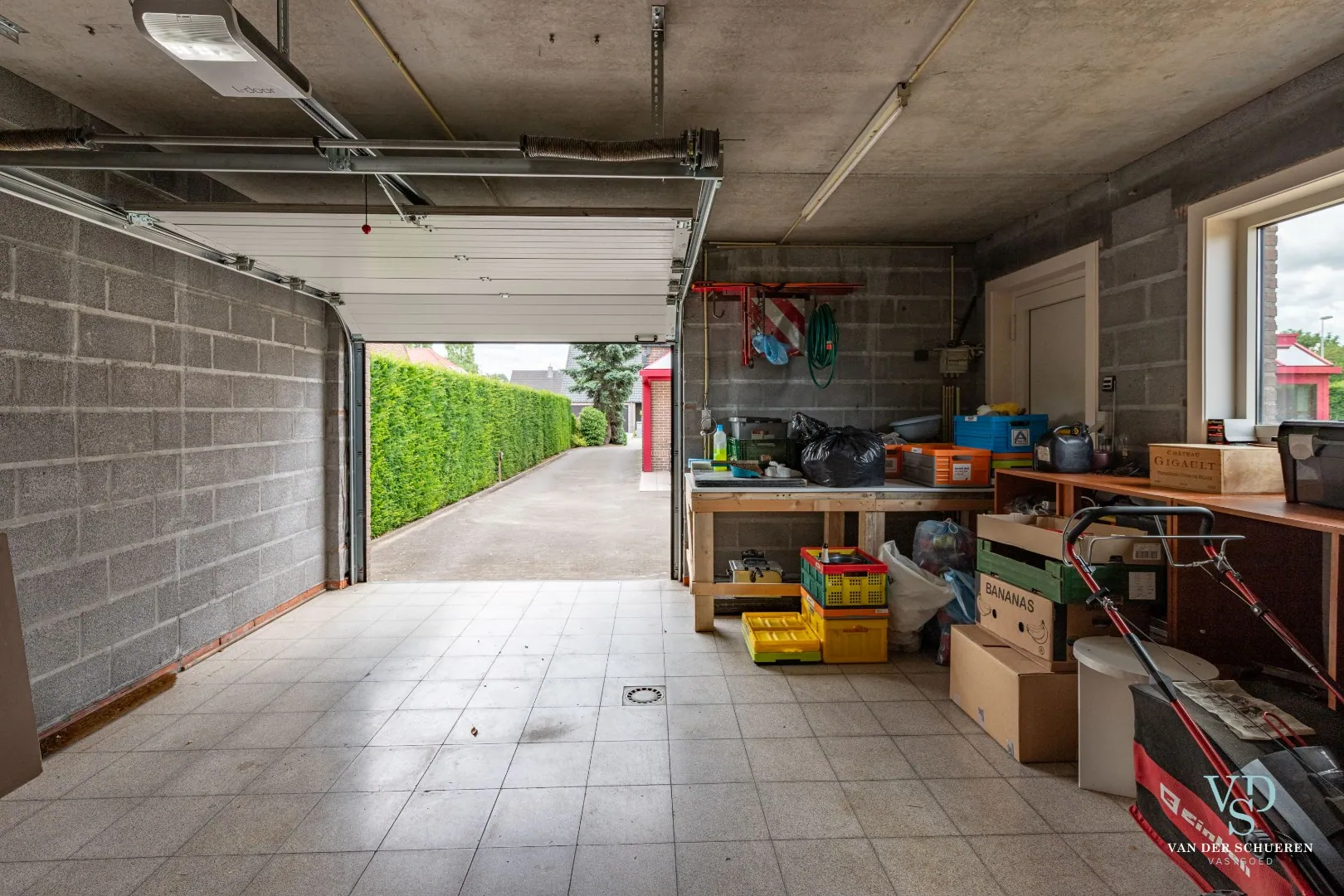 Eveneens aanwezig : afzonderlijke garage met bergzolder en mooi onderhouden tuin met tuinhuis.