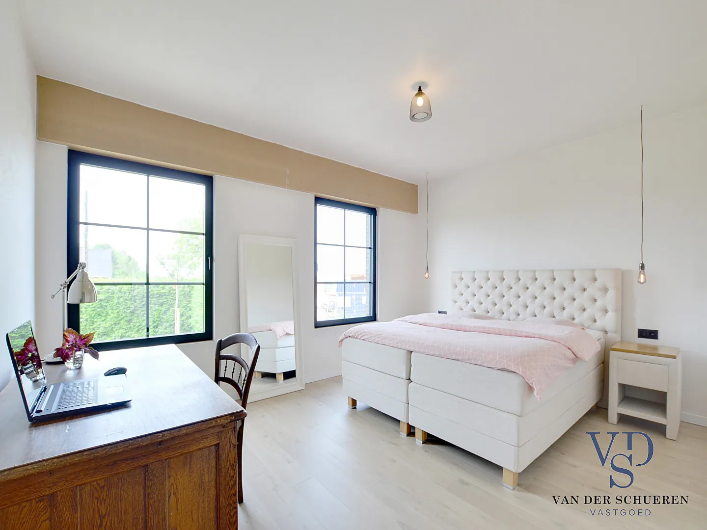 De woning is eveneens bijzonder praktisch ingedeeld, met o.a. een ruime berging en kelder, én een mega-zolder. Privatief treffen we op het gelijkvloers eveneens 3 stijlvolle slaapkamers en een bijpassende badkamer.