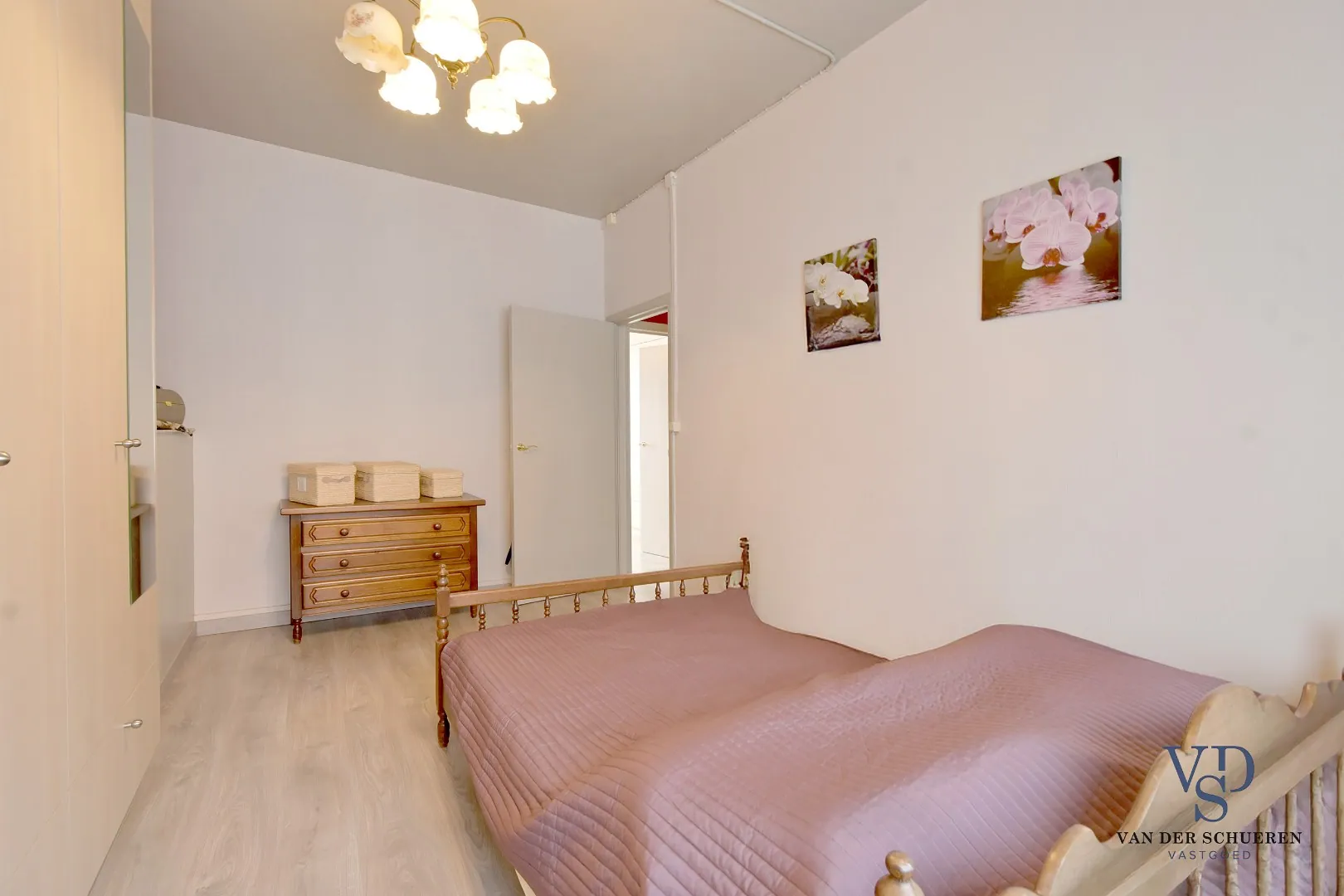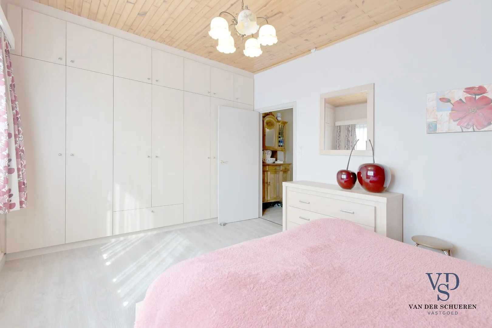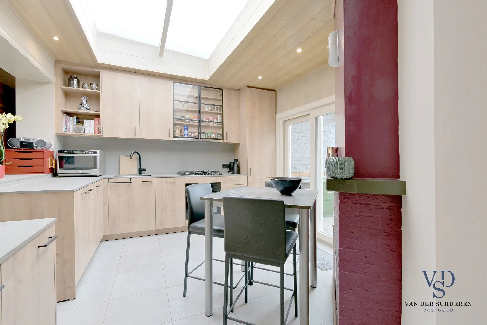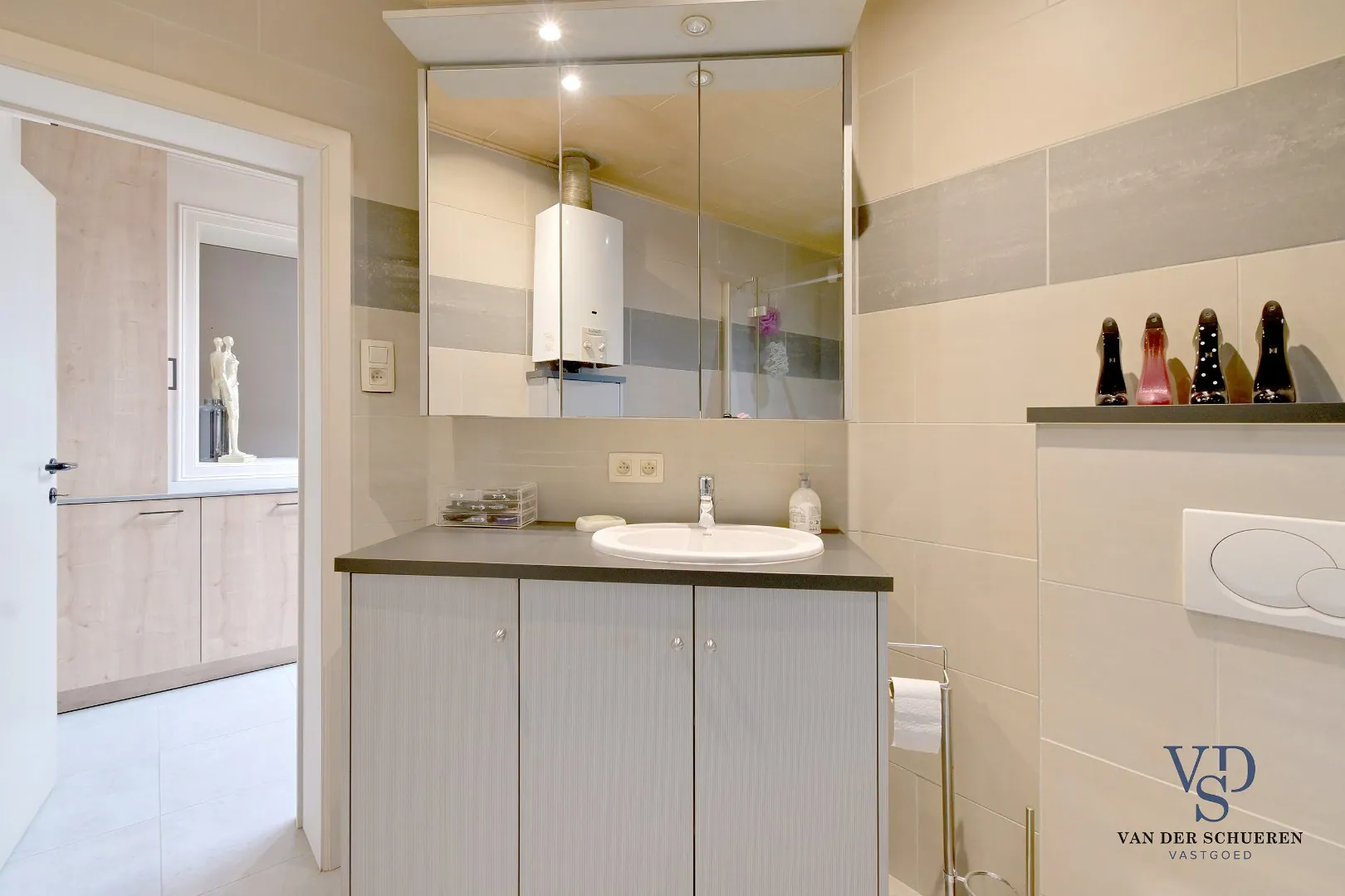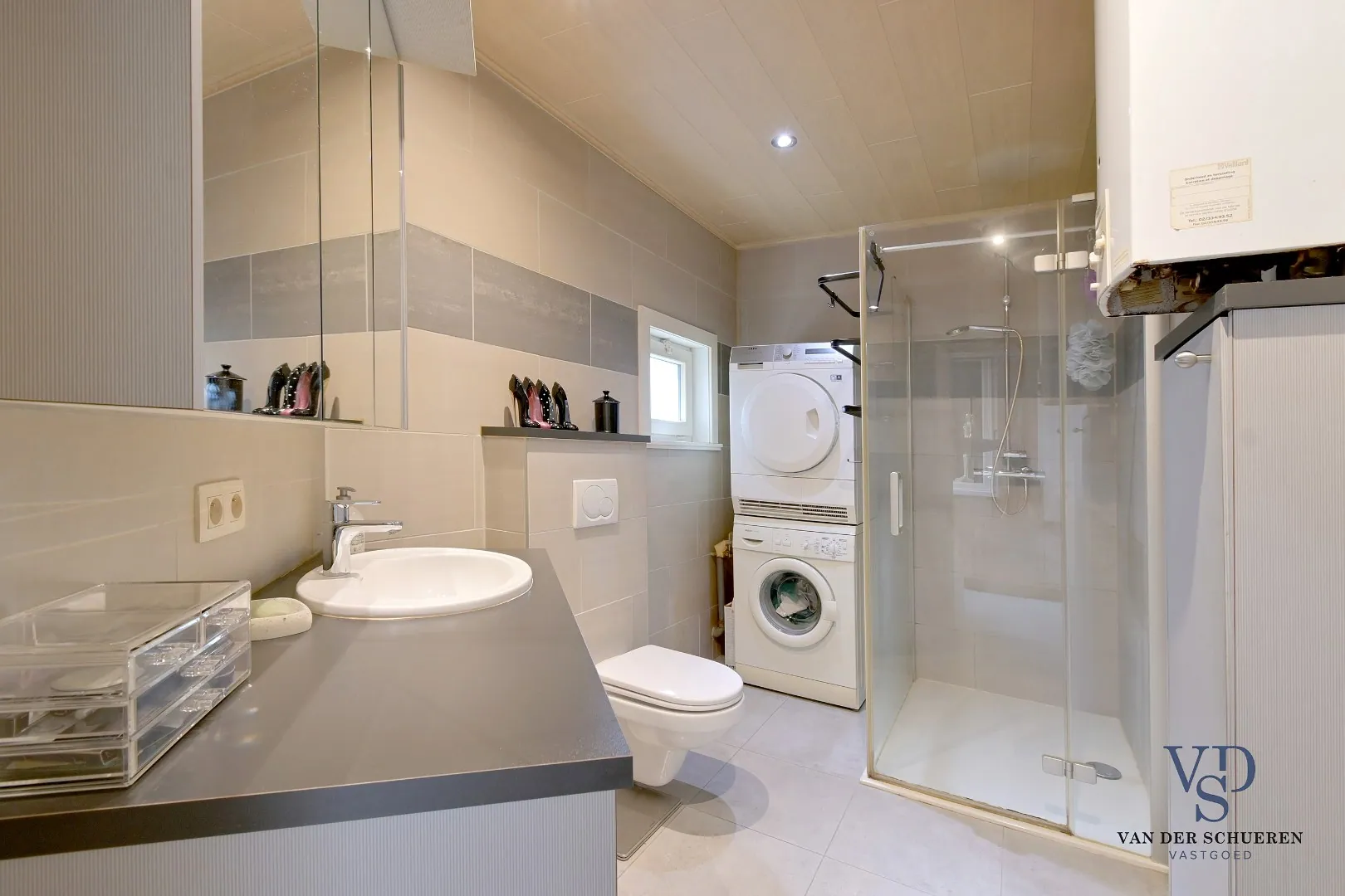 Bijzonder degelijke woning met op het gelijkvloers een aangename leefruimte, aansluitend op een eigentijdse, vernieuwde keuken. De functionele badkamer biedt eveneens plaats voor een wasmachine en droogkast.