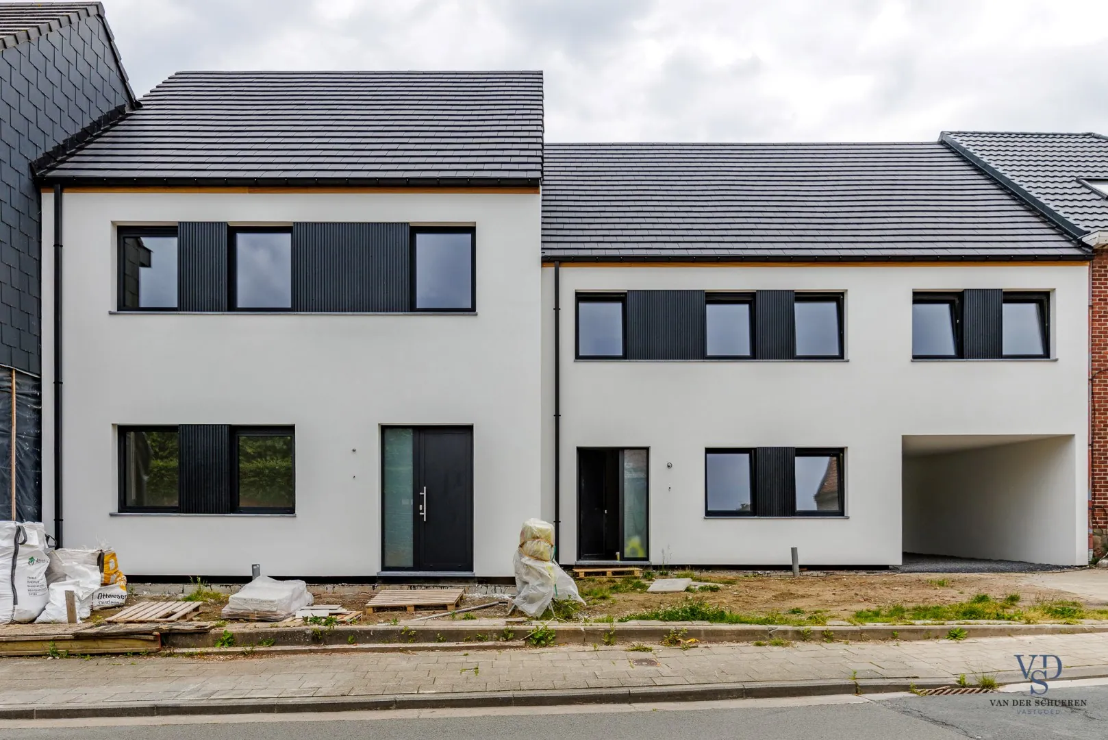 Beide woningen hebben een ruime zolderverdieping die gebruikt kan worden als extra opbergruimte. Achteraan zijn er per woning twee private parkeerplaatsen voorzien, bereikbaar via een doorgang via de rechterwoning.